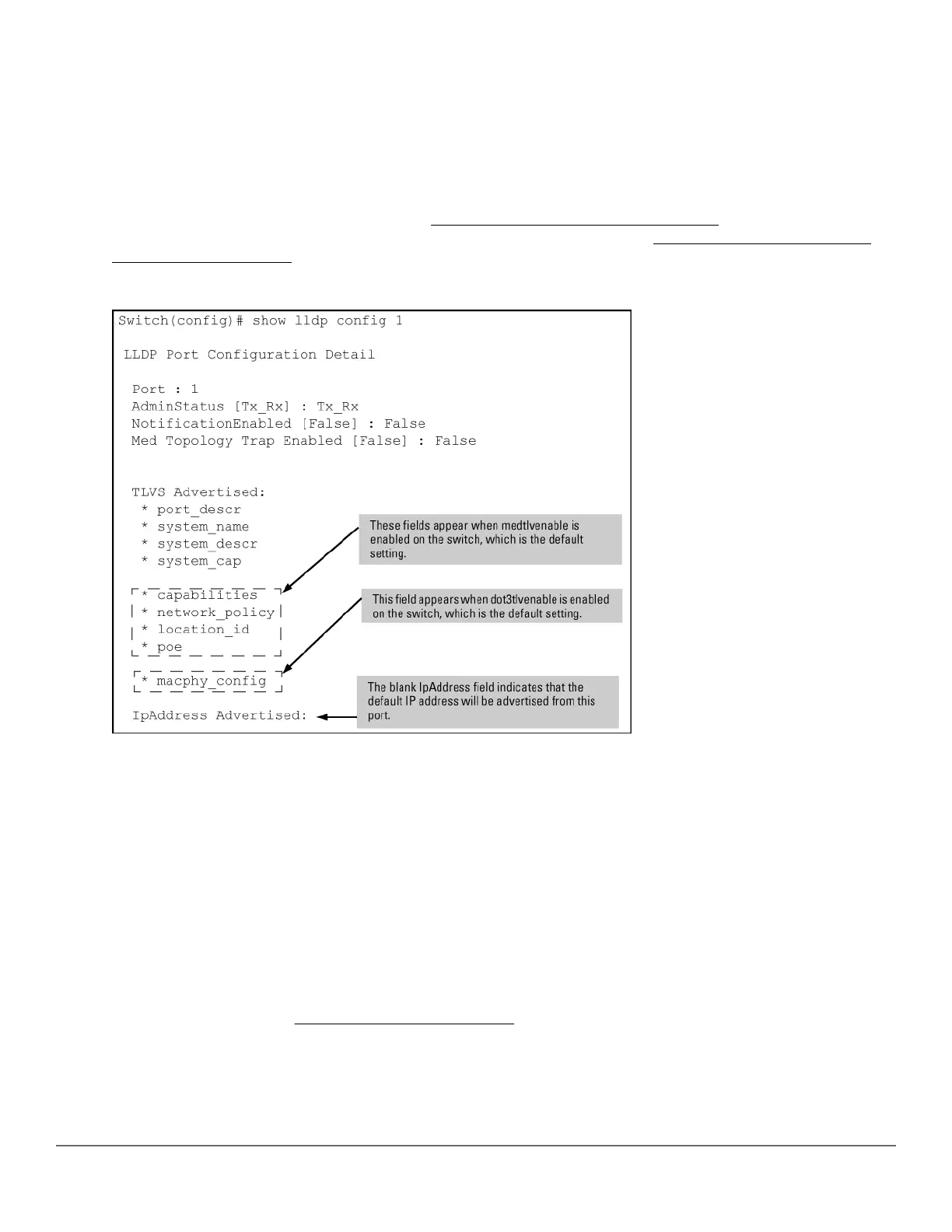 Displays the LLDP port-specific configuration for all ports in <port-list>, including which optional TLVs and any