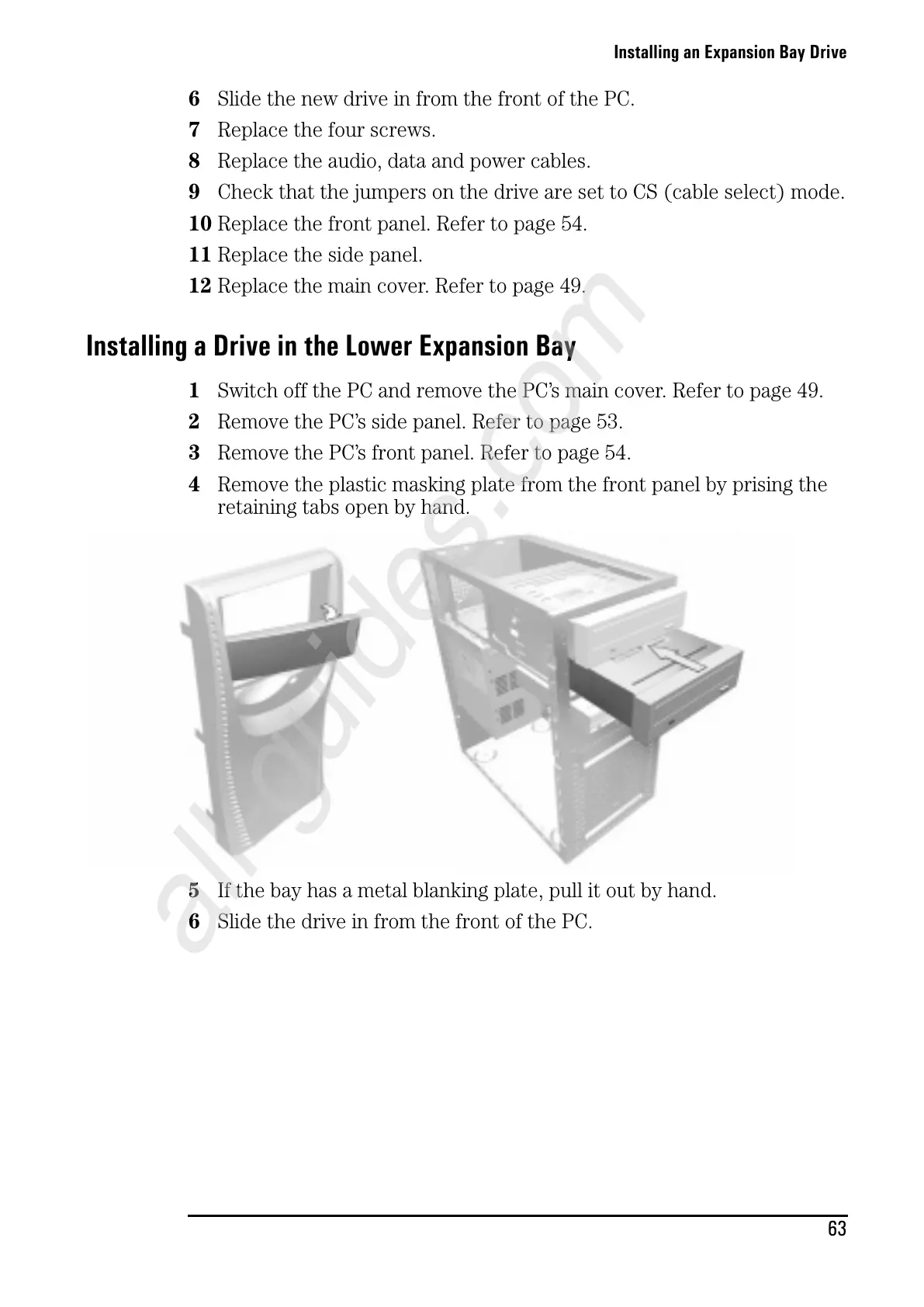 5 If the bay has a metal blanking plate, pull it out by hand.