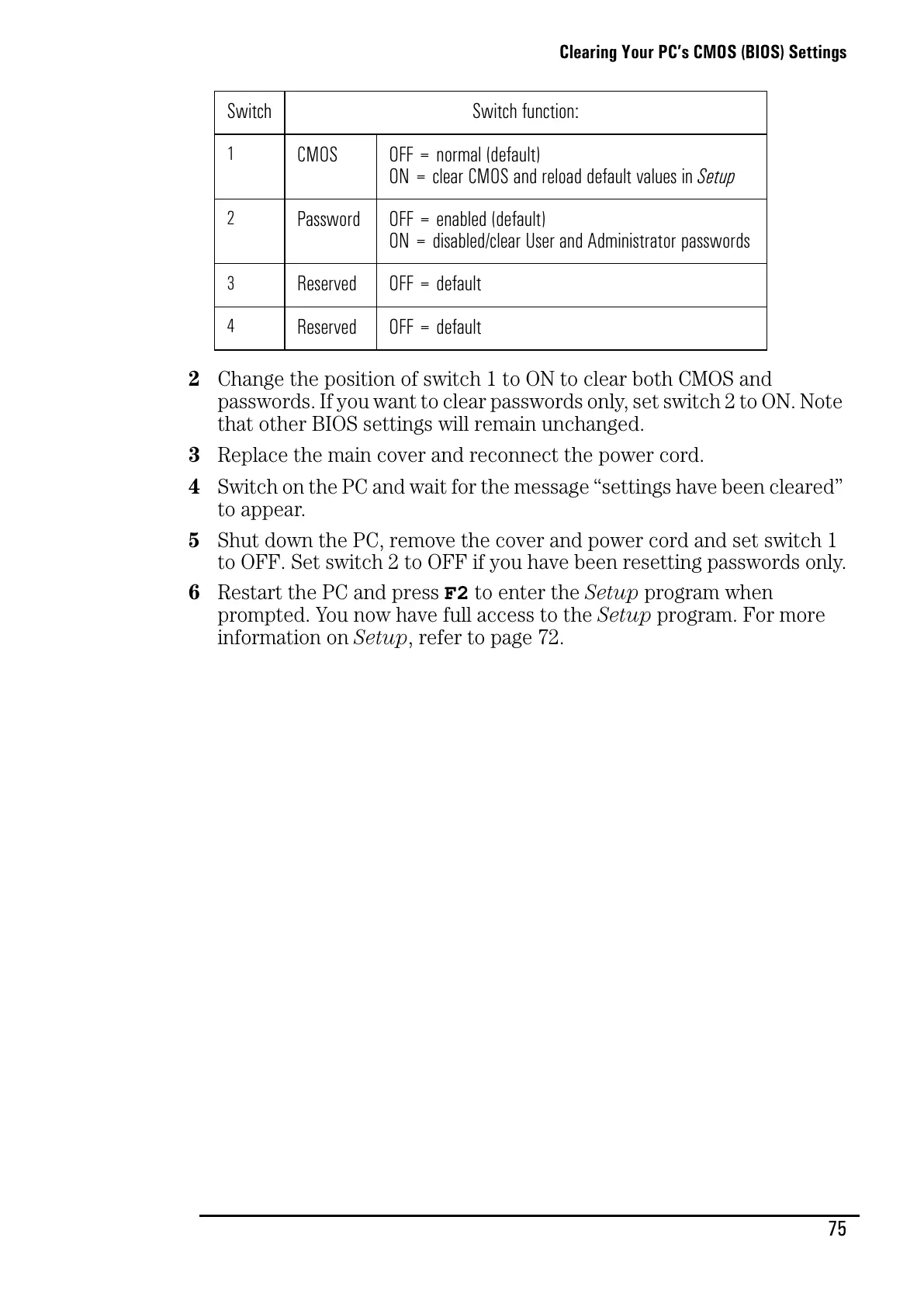 passwords. If you want to clear passwords only, set switch 2 to ON. Note
