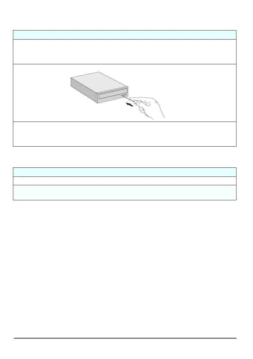 • With a thin, solid rod, such as the end of a paper clip, push the CD-ROM drive’s manual eject button