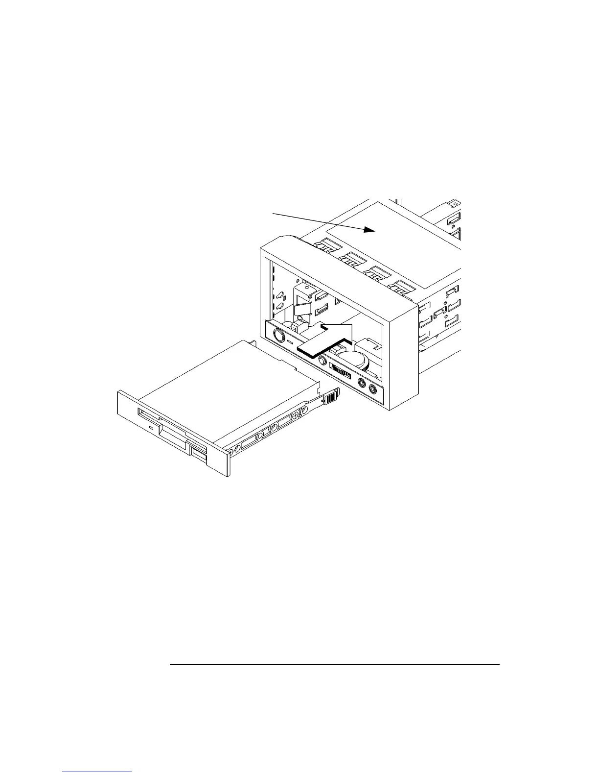 4 From the front of the storage tray, line up the disk slides on the floppy drive with