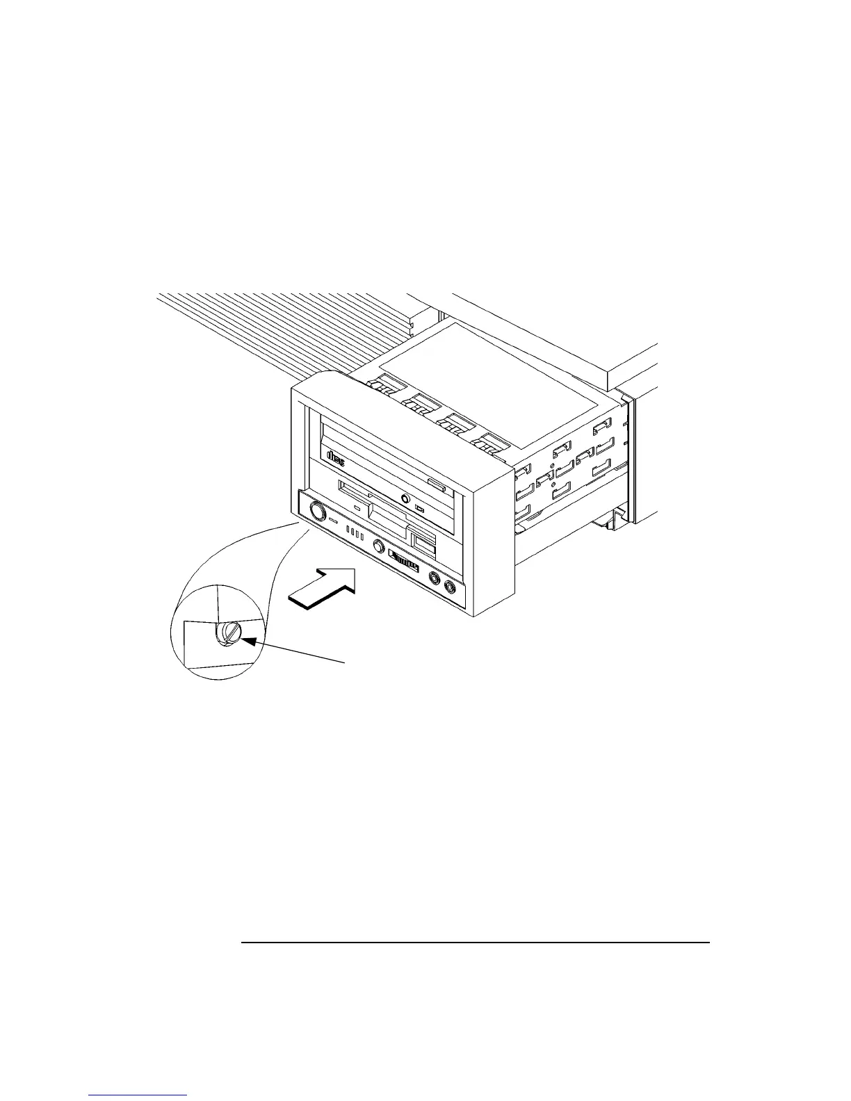 1 Slide the storage tray assembly into the system unit chassis, as shown in Figure