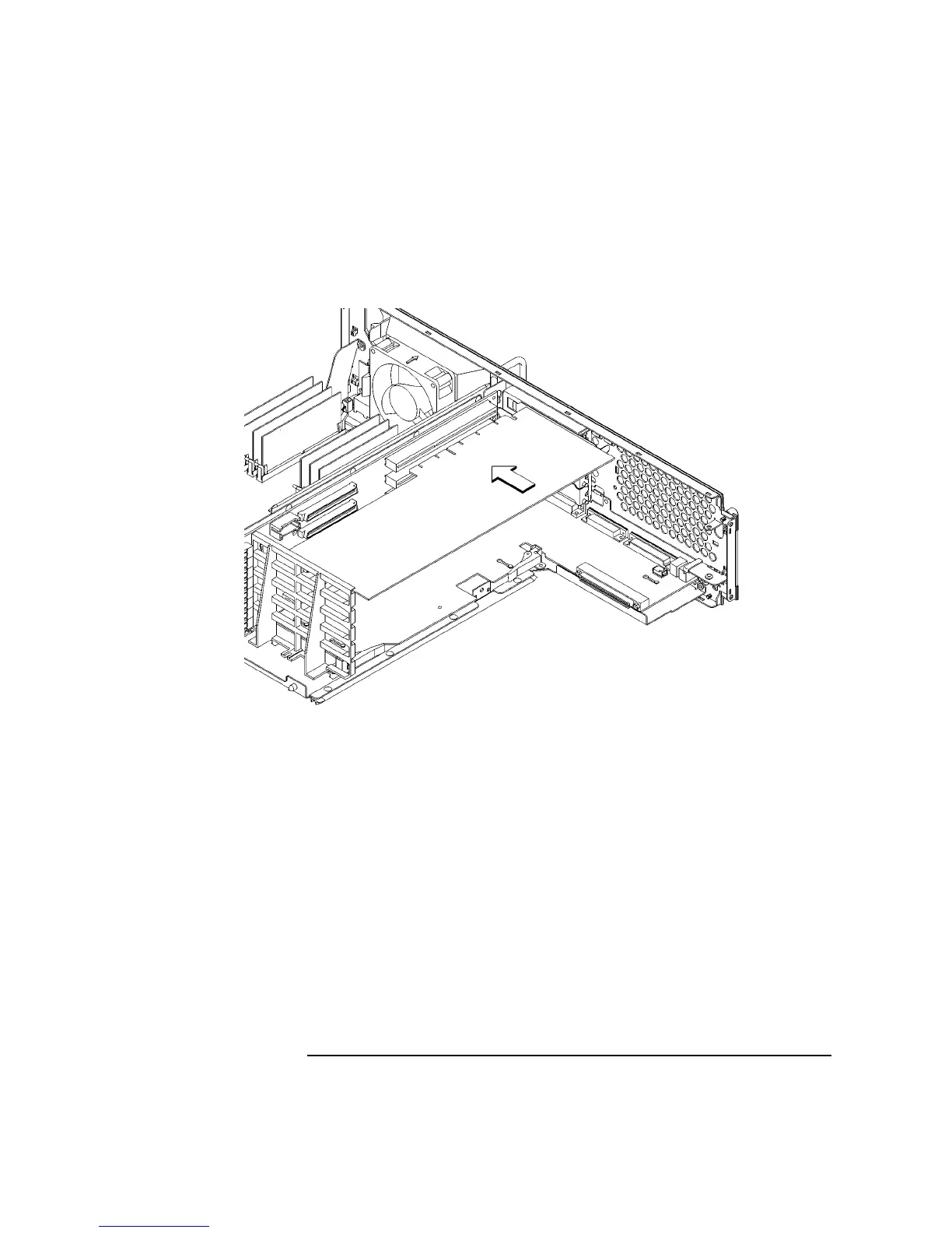 7 Slide the board into the slot, as shown in Figure 53. Make sure that the hole in the