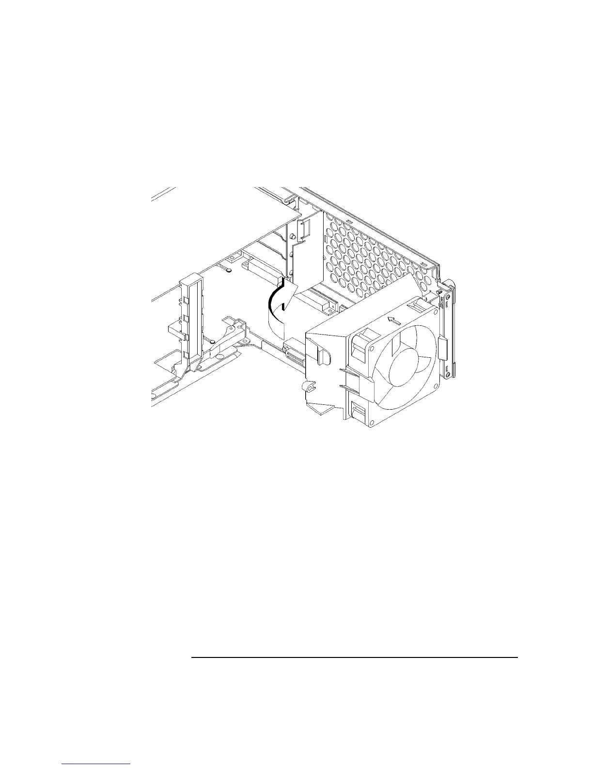 11 Rotate the fan back into place, as shown in Figure 55. Push it into the rear panel