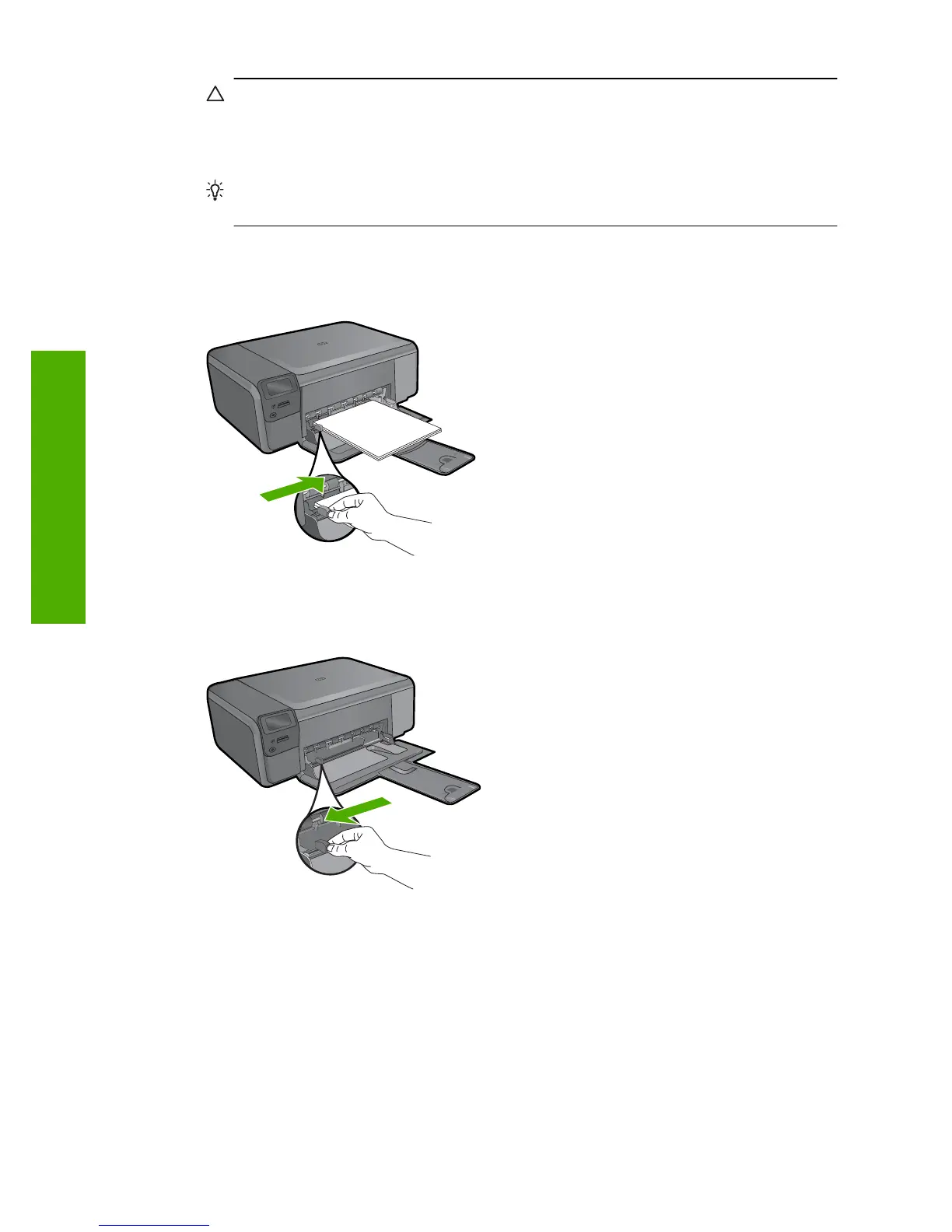 edge forward and the print side down. Slide the stack of photo paper forward until it