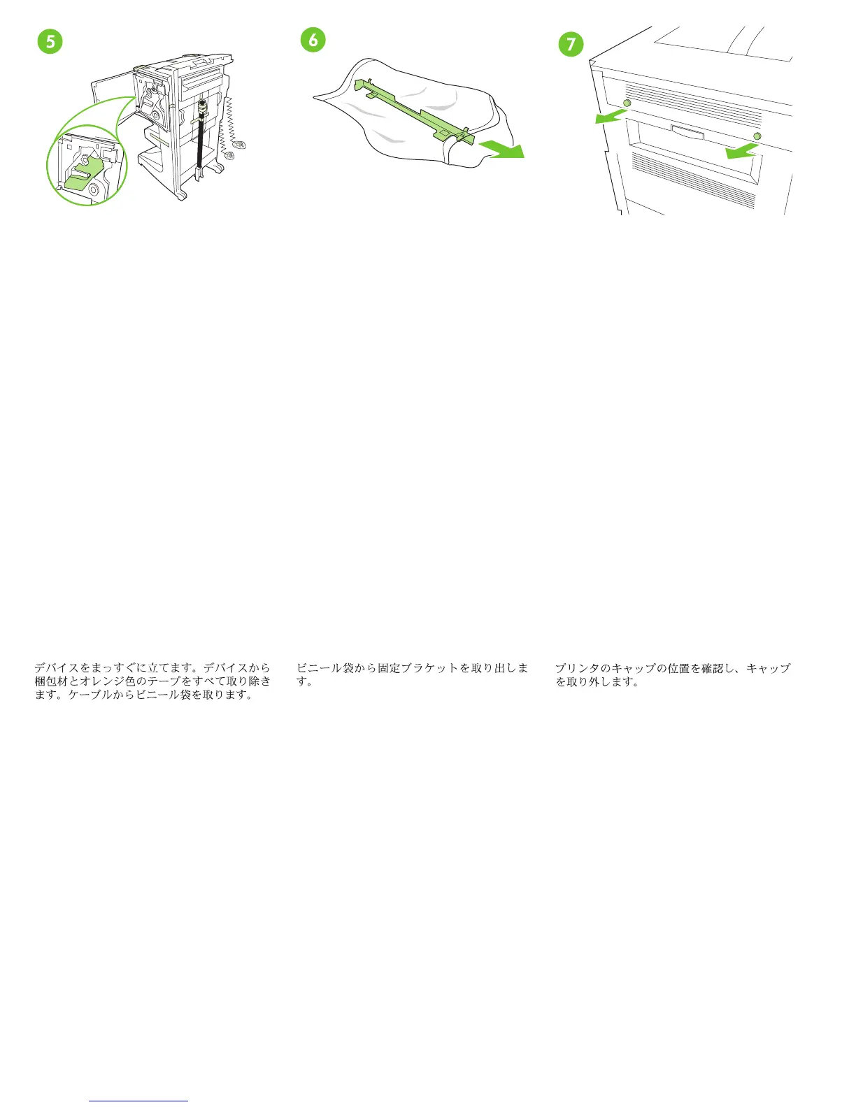 비닐에서 래칭 브래킷을 꺼내십시오 . 프린터 캡을 찾아 분리하십시오 .