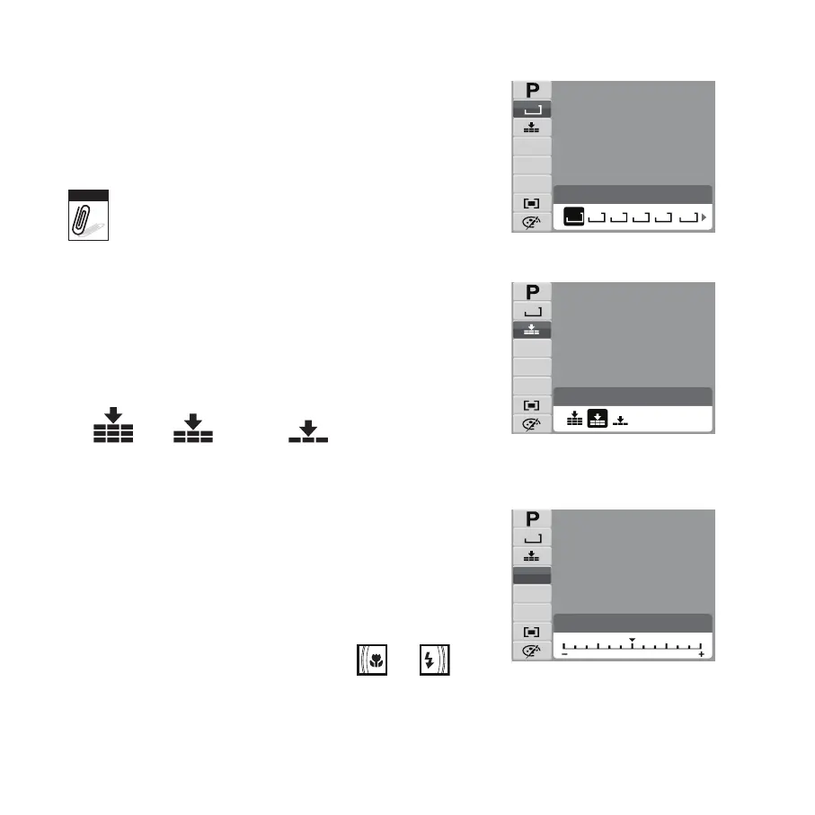 The available settings are: 0EV, +0.3EV, +0.7EV, +1.0EV, +1.3EV, +1.7EV, +2.0EV, •
