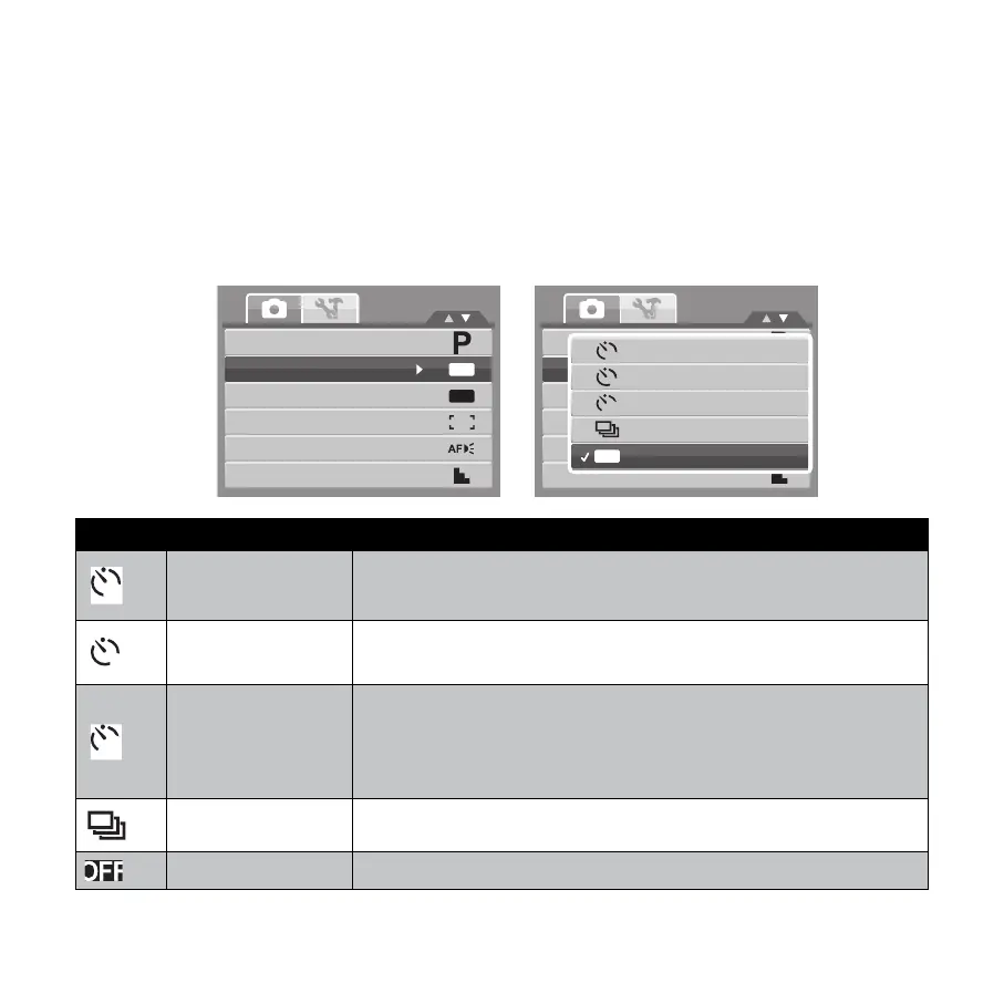 Your camera features a Self-Timer and Burst which can be set in the Self-Timer/Burst