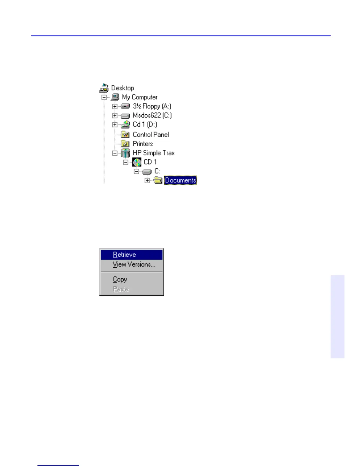 4. Click the file or folder you want to retrieve with the right mouse button.