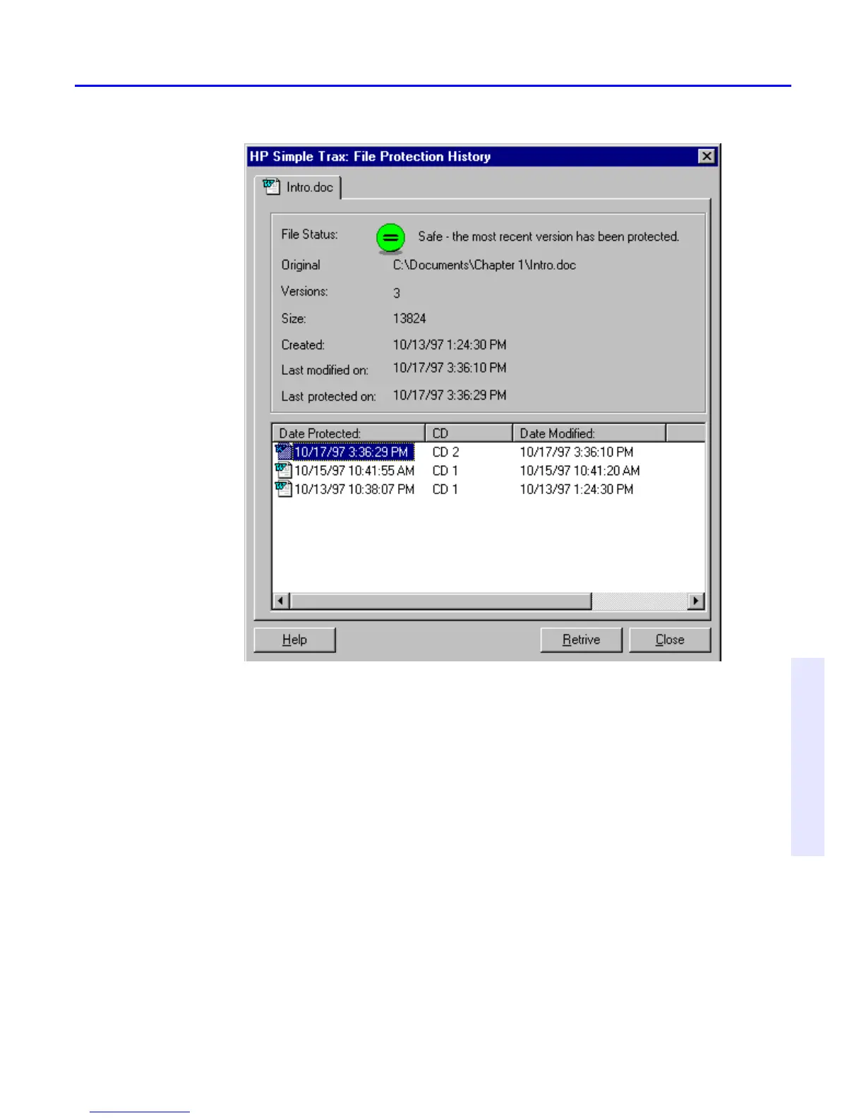 File Protection History dialog box and click the Retrieve button. Older