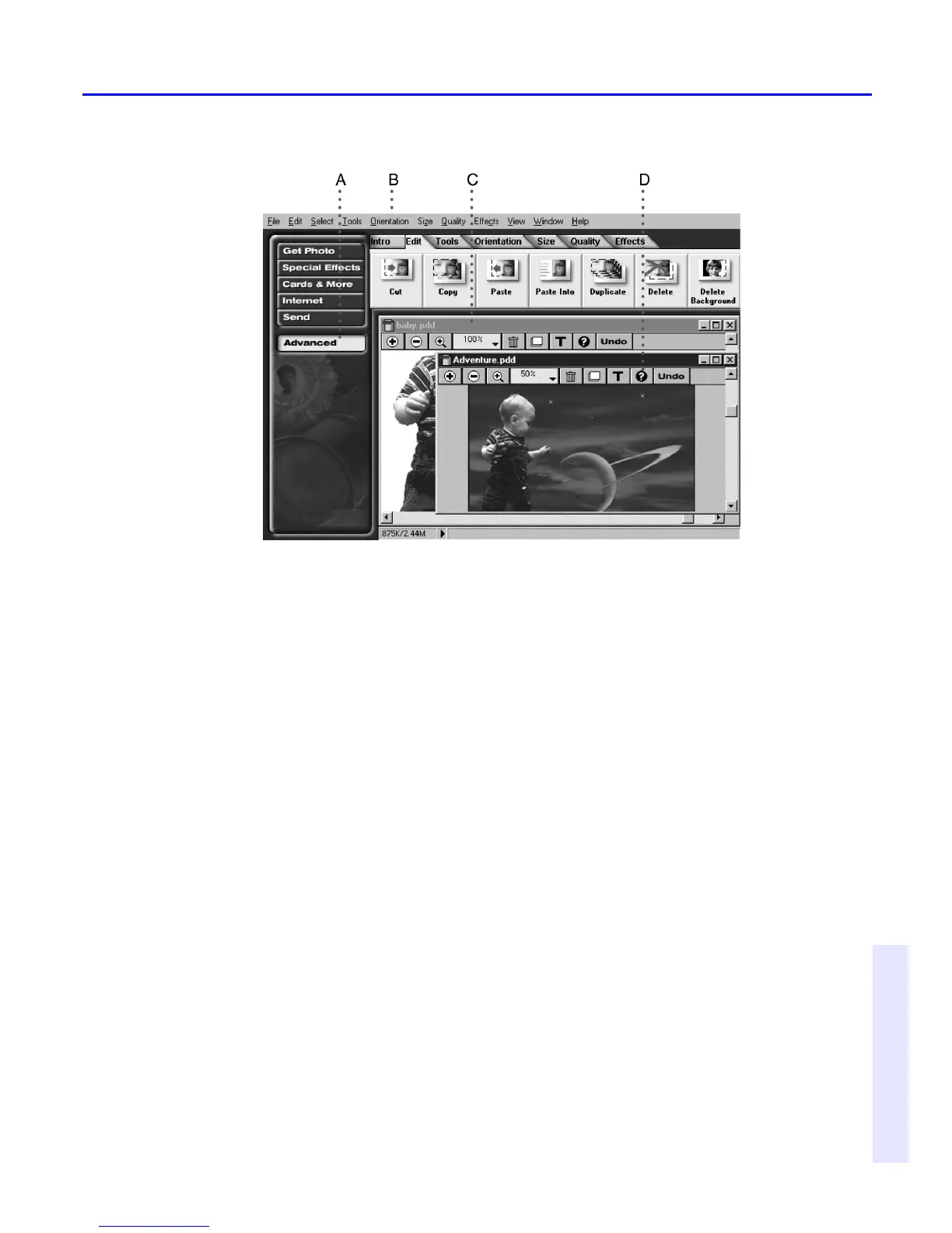 step activities in which selection is necessary, PhotoDeluxe presents the