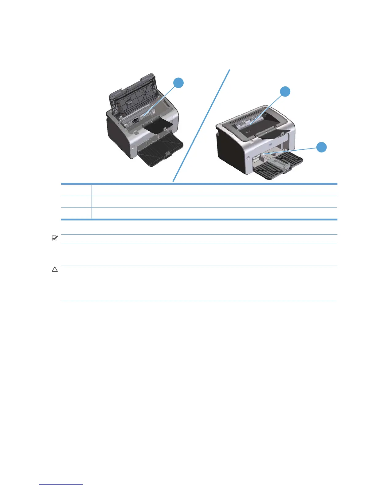 Jams can occur at the following locations in the product.