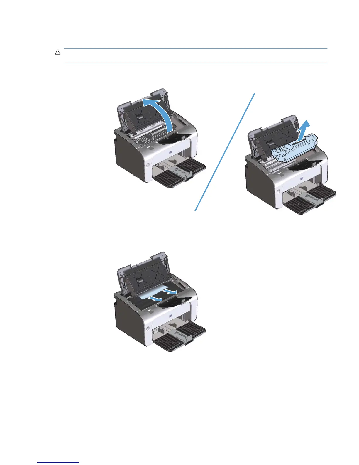 CAUTION: Do not use sharp objects, such as tweezers or needle-nose pliers, to remove jams.