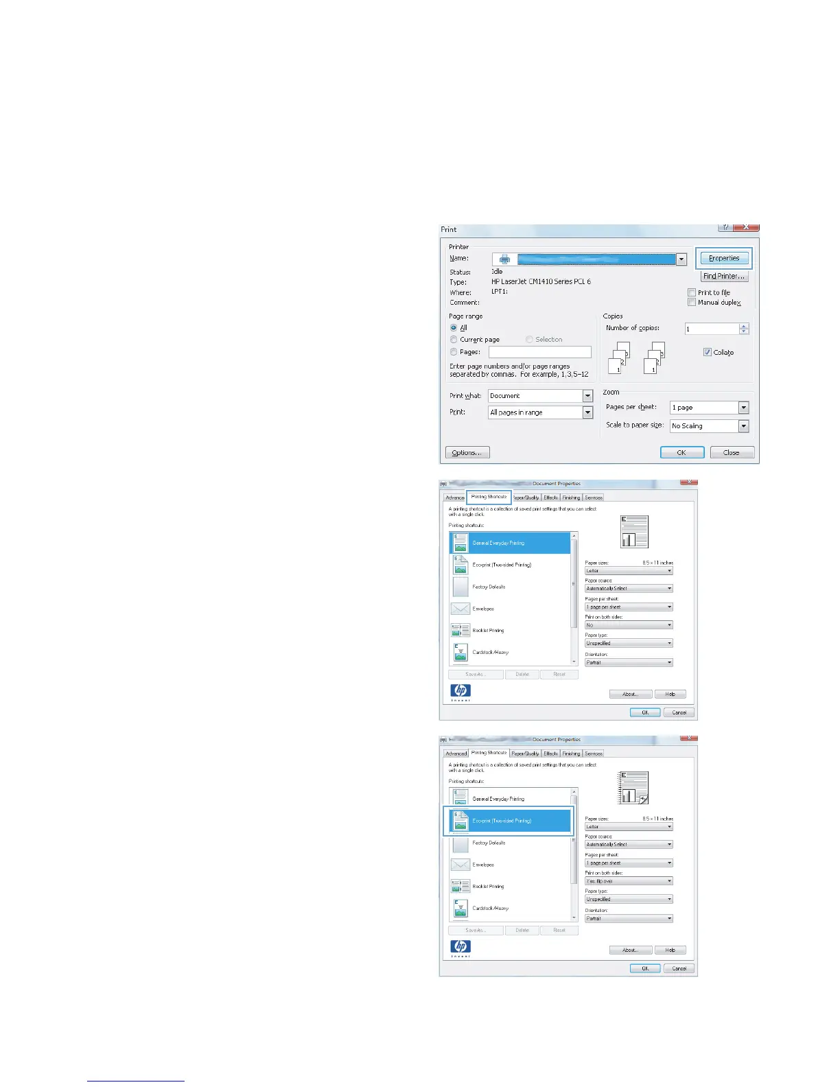 3. Click the Printing Shortcuts tab.