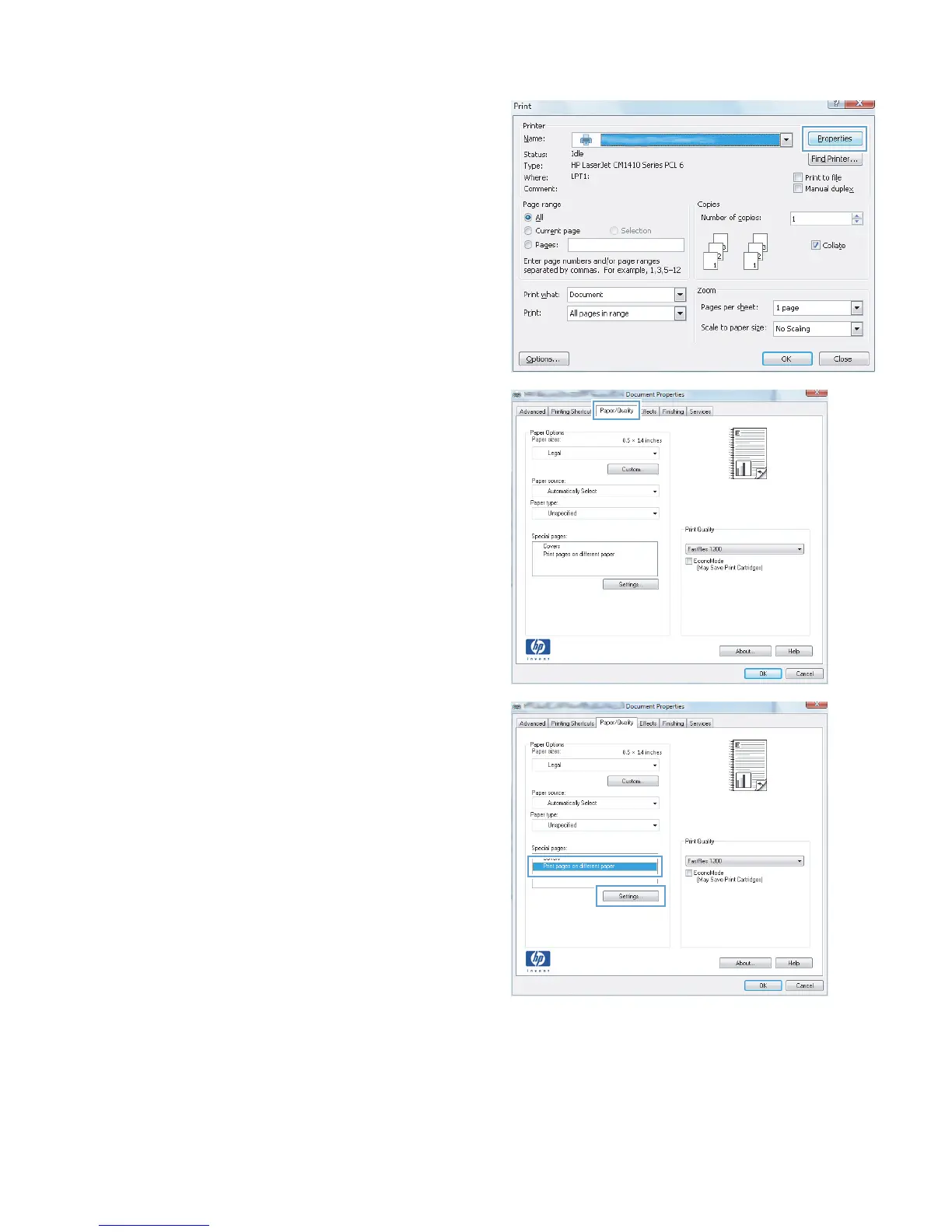 4. Click the Print pages on different paper
