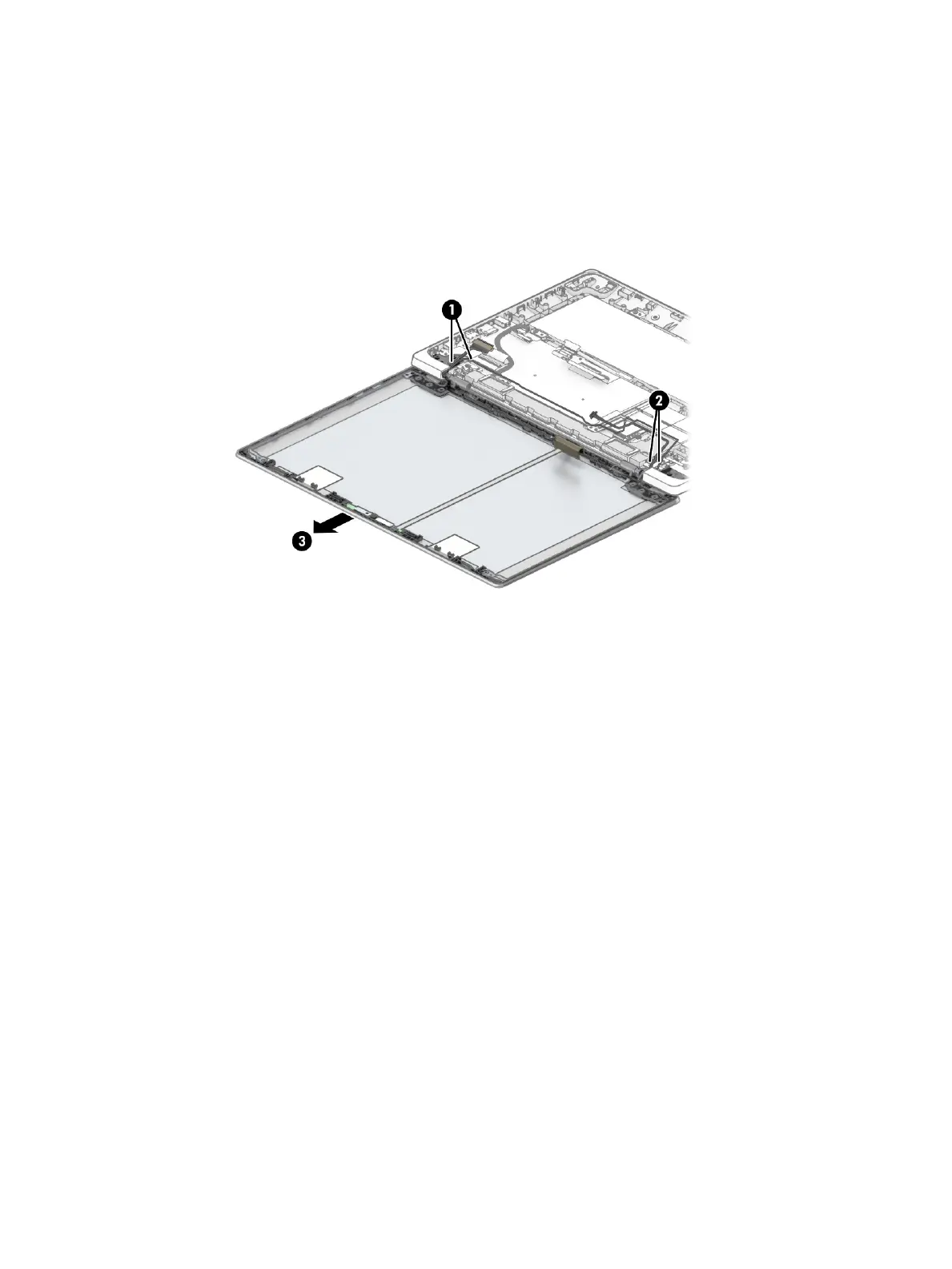 f. Release the webcam cable and the wireless antenna cable from the routing channel in the left display