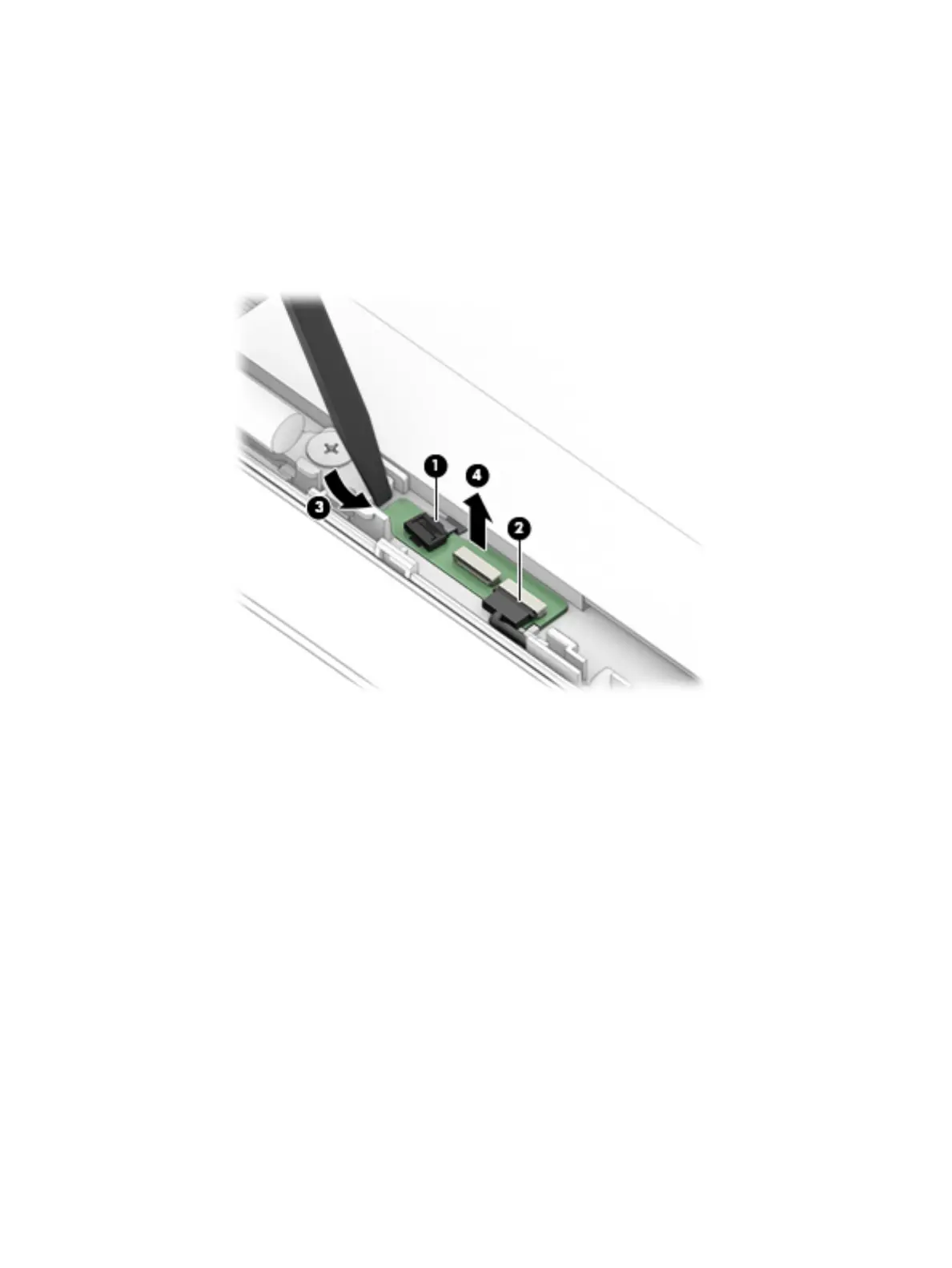 c. Use a plastic tool to loosen the board (3), and then remove the board from the display (4).