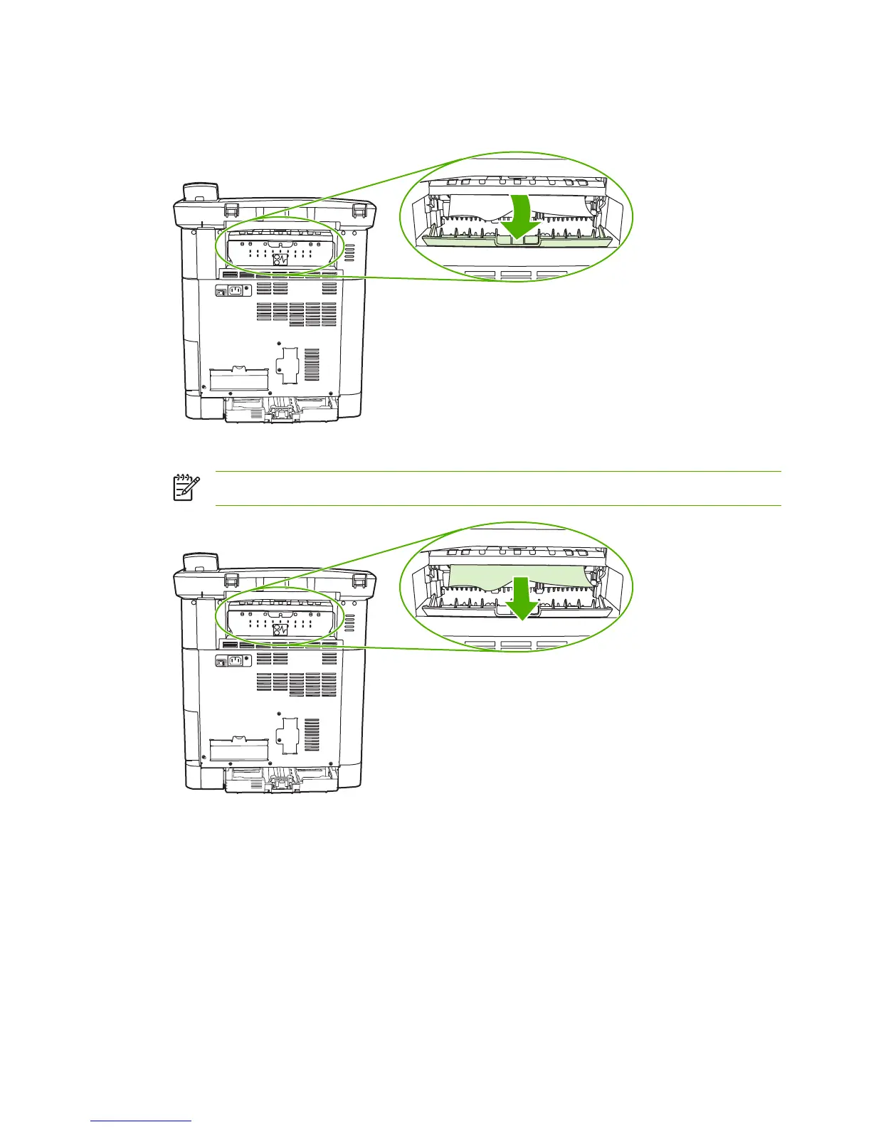 NOTE Pull gently and evenly on the jammed paper to avoid damaging the fuser film.