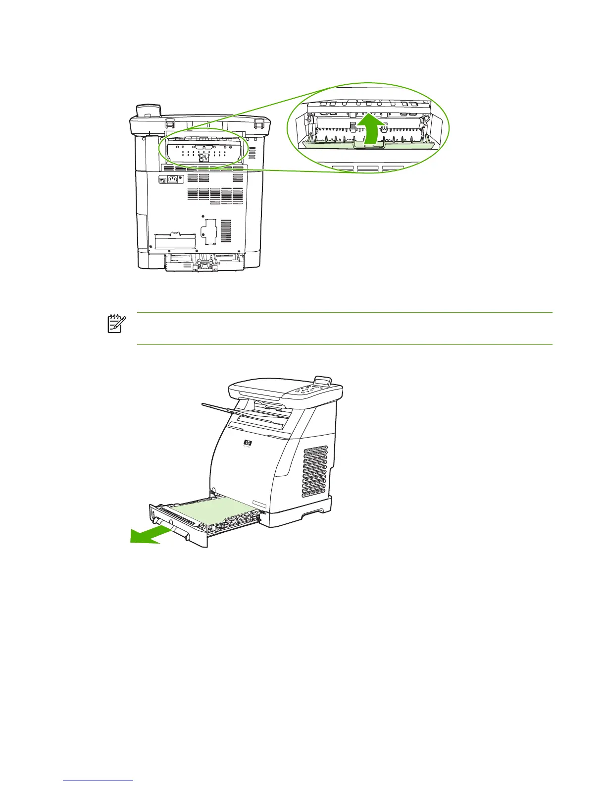 NOTE Before attempting to clear jams from tray 2 or optional tray 3, remove any jams inside