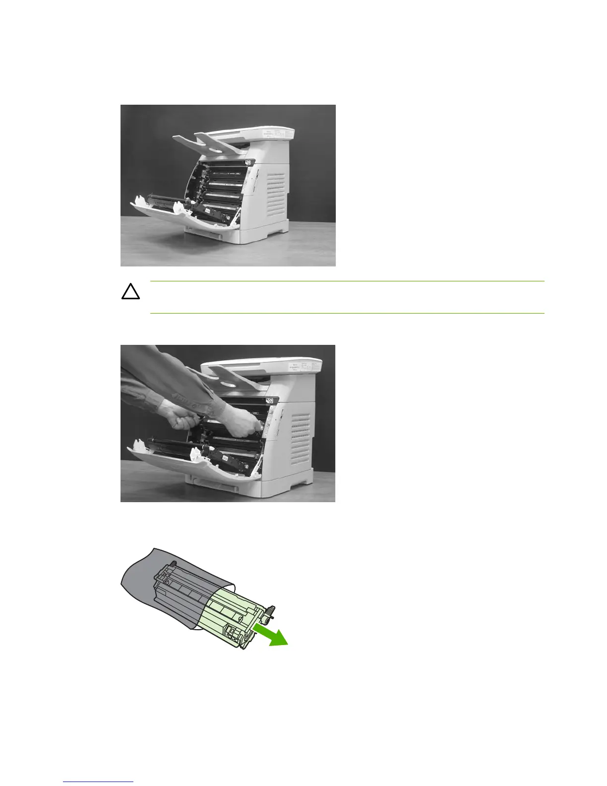 CAUTION Do not place anything on the transfer belt (ETB) located on the inside of the