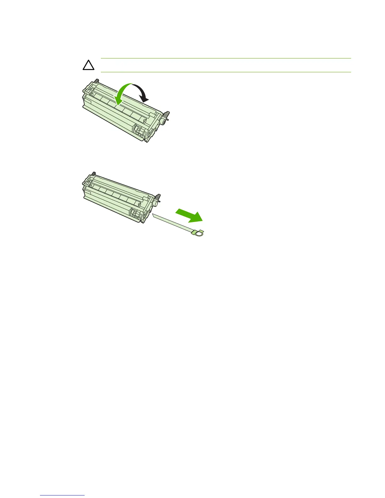 5. Remove the orange shipping locks and the orange shipping tape from the new print cartridge.