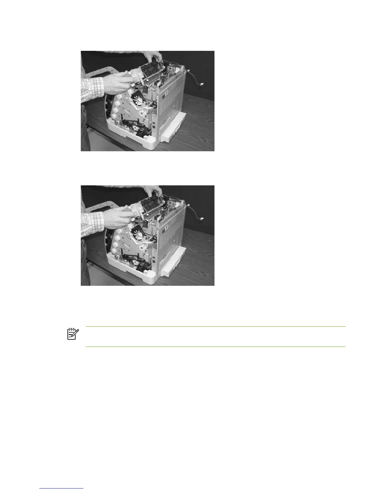 10. Gently rocking it if necessary, roll the fuser forward to remove.