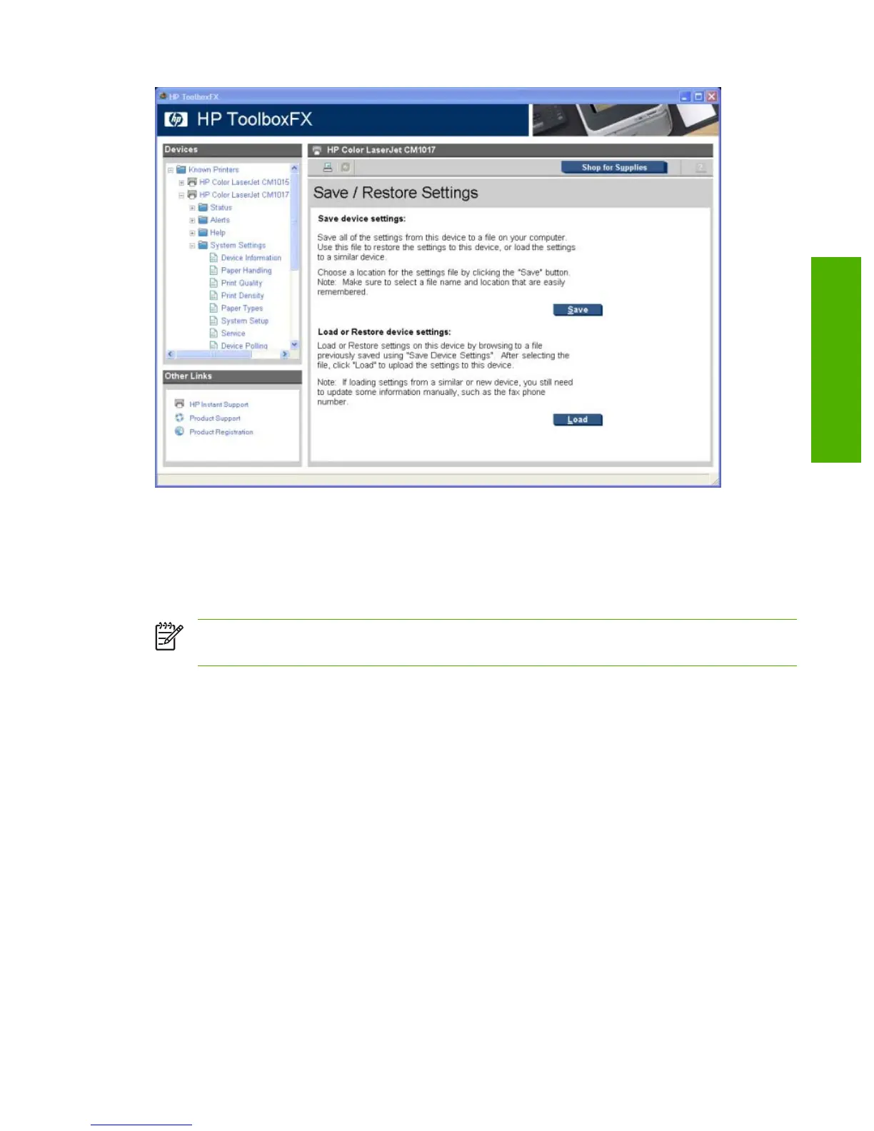 NOTE The HP ToolboxFX will not function until settings have been fully loaded and the HP Color