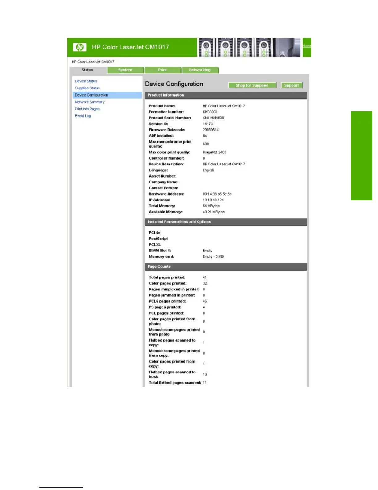 Figure 2-78 HP EWS – Device Configuration page – 1 of 3