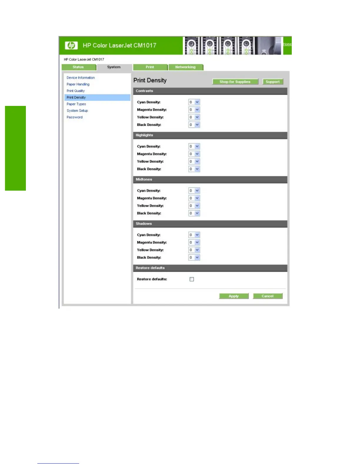Use the Paper Types page to set the default paper type settings for the HP Color LaserJet CM1017