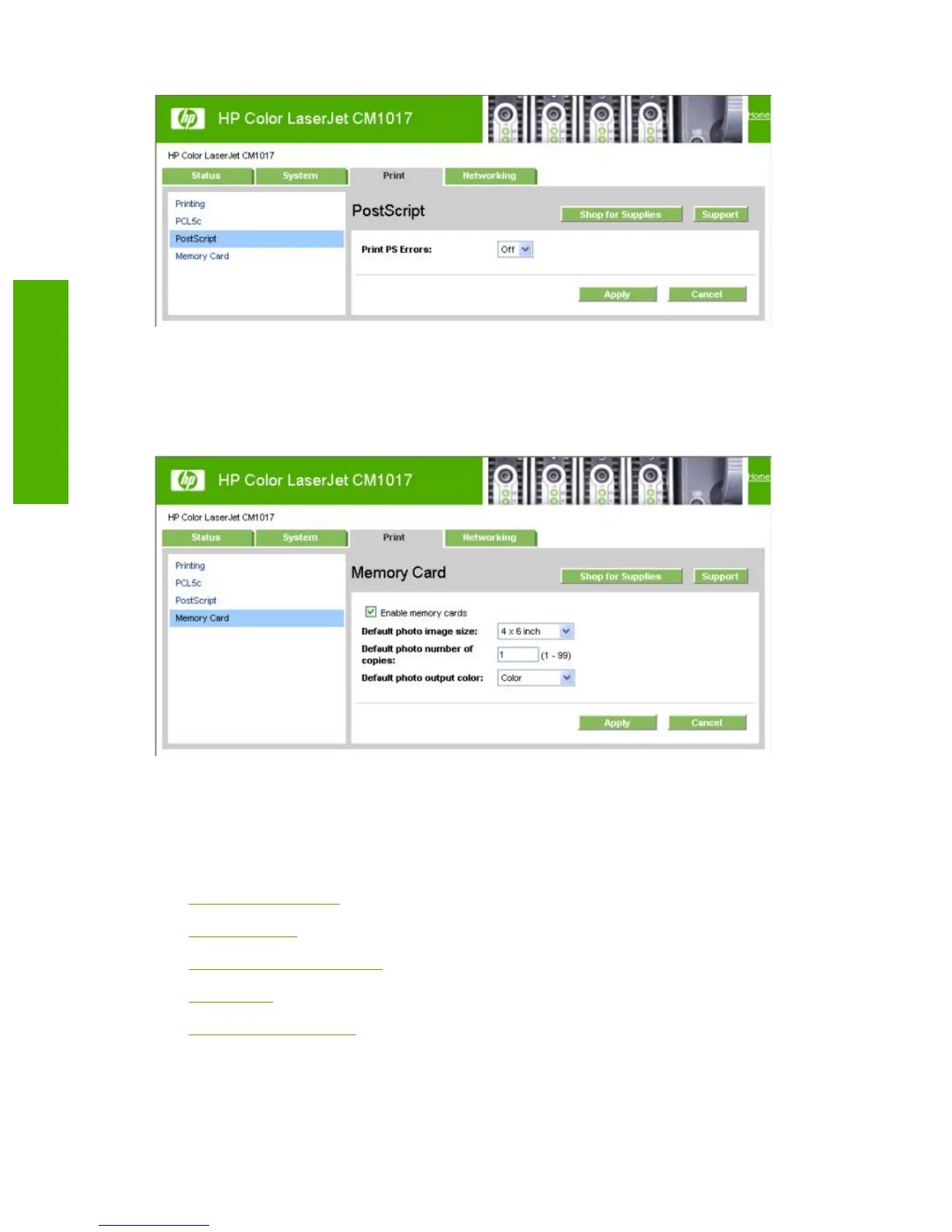 Use the Memory Card page to enable and control the memory card function of the HP Color