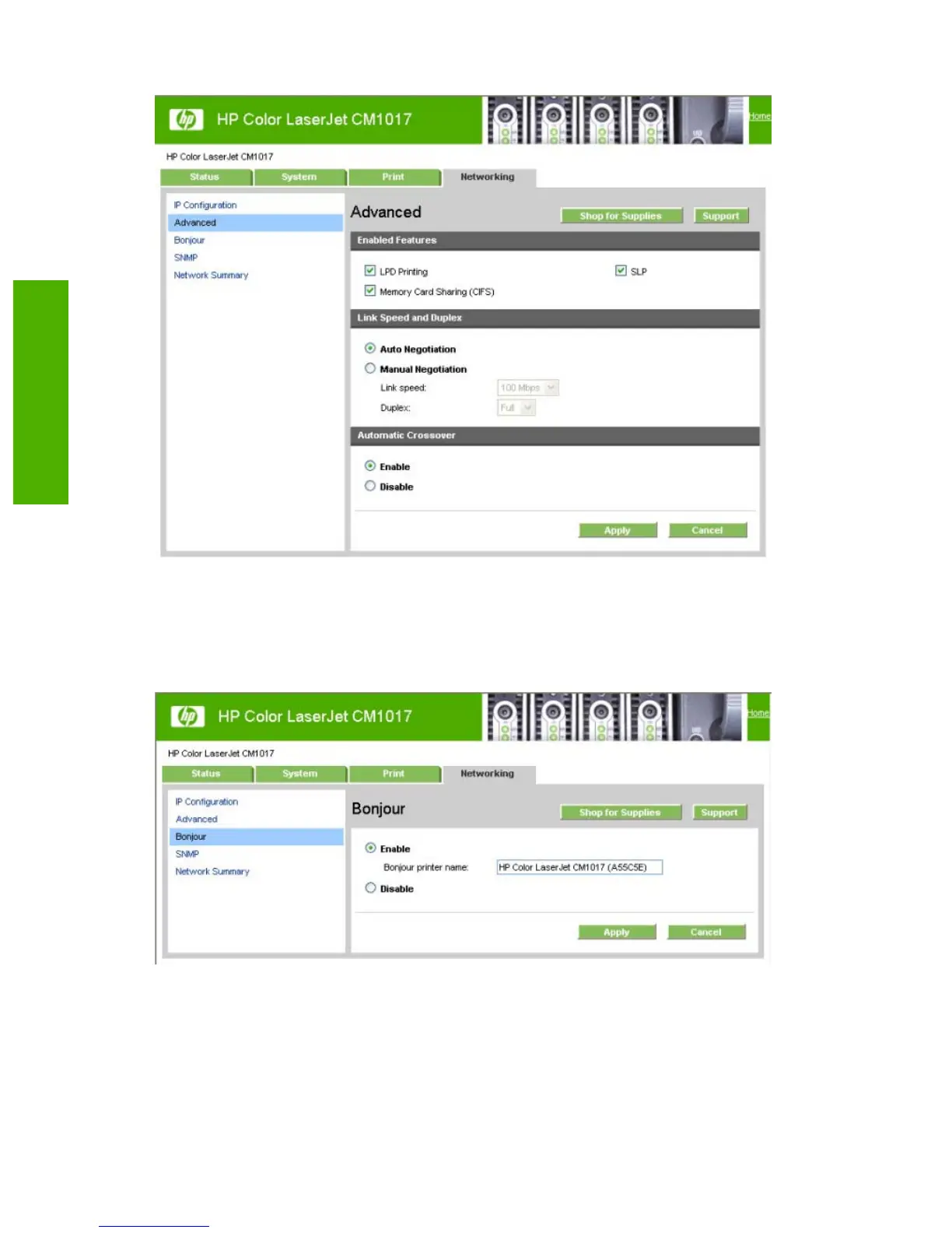 Figure 2-98 HP EWS – Bonjour (Rendezvous) page