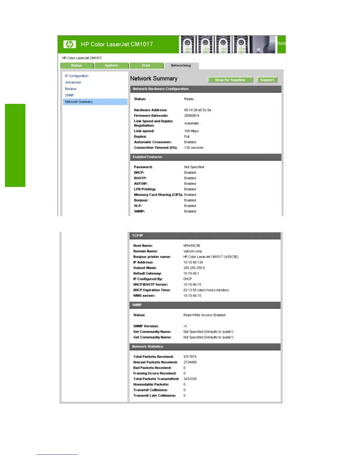 Figure 2-101 HP EWS – Network Summary page – 2 of 2