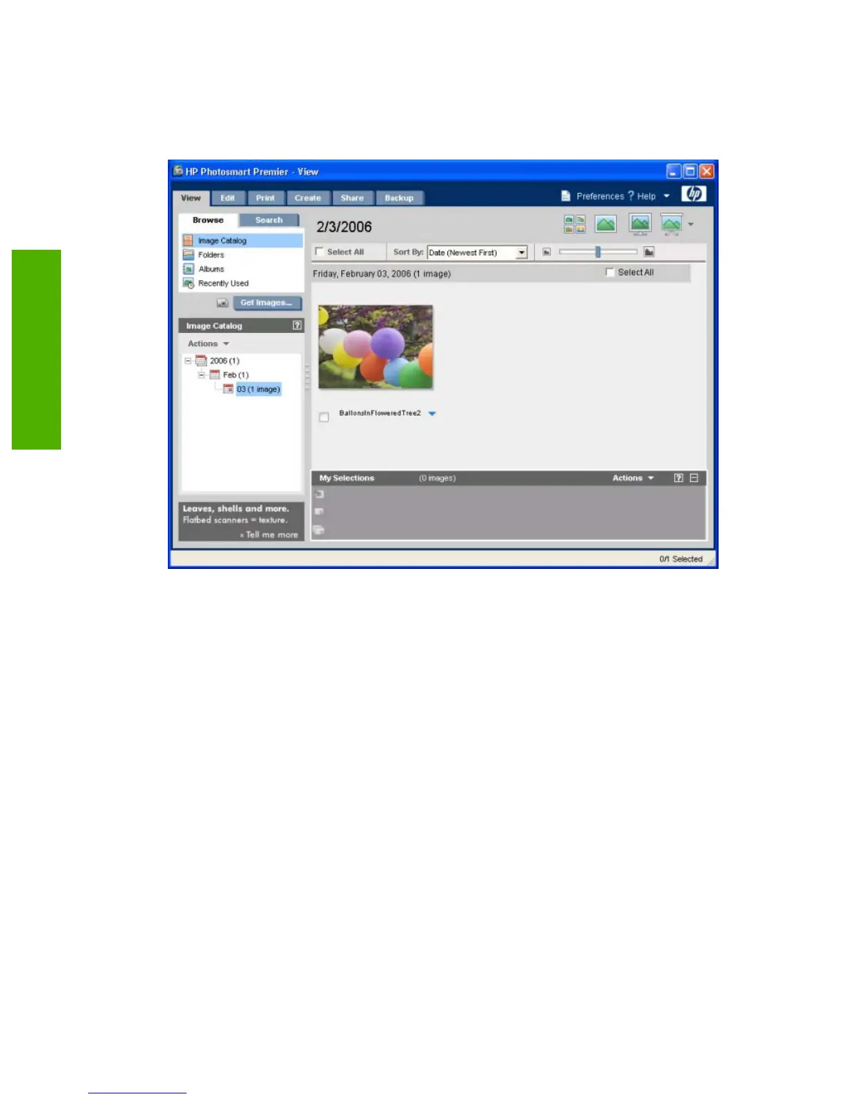 View. This is the default screen when the program opens. Navigate to any images on the computer