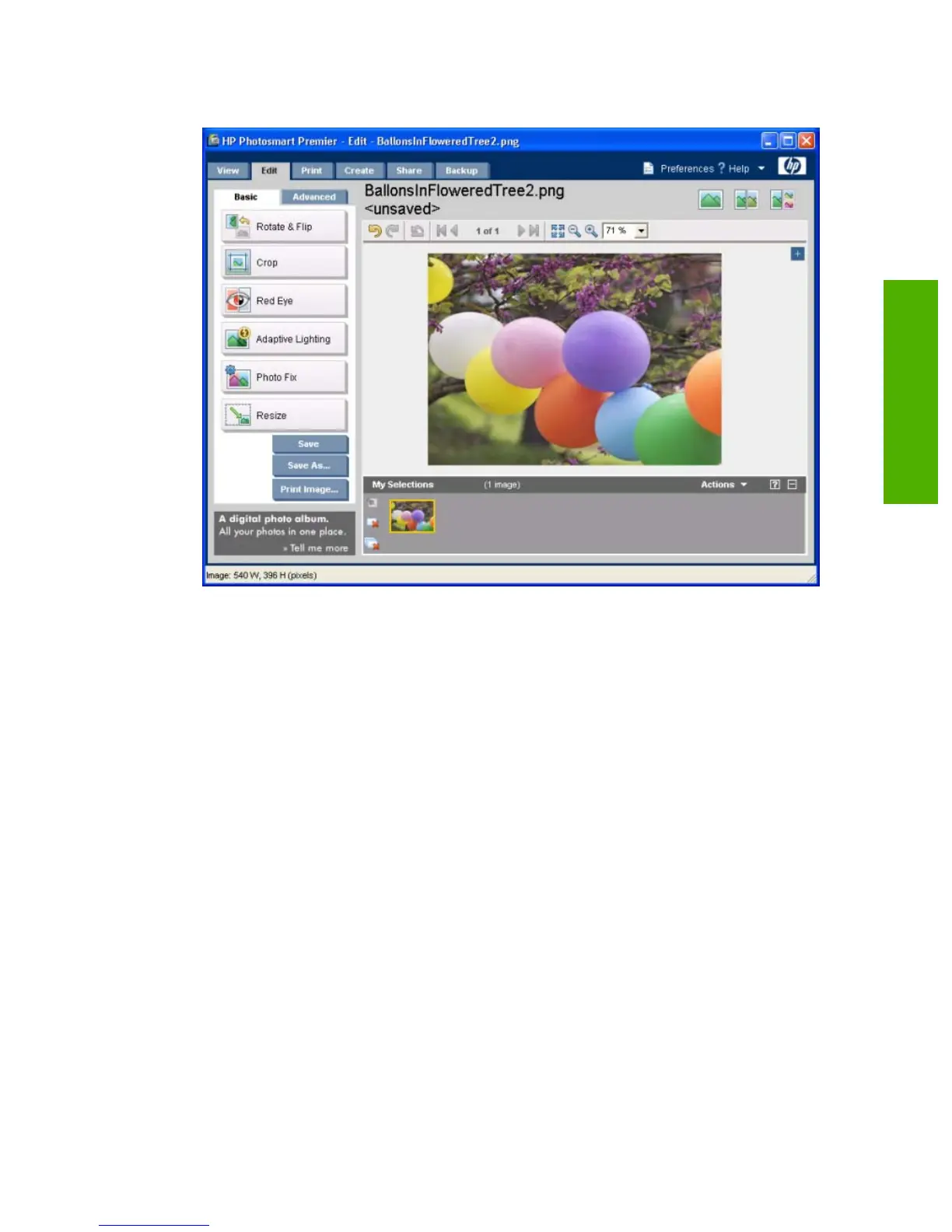 Edit. Select an image and click the Edit tab to open and make changes to the image.