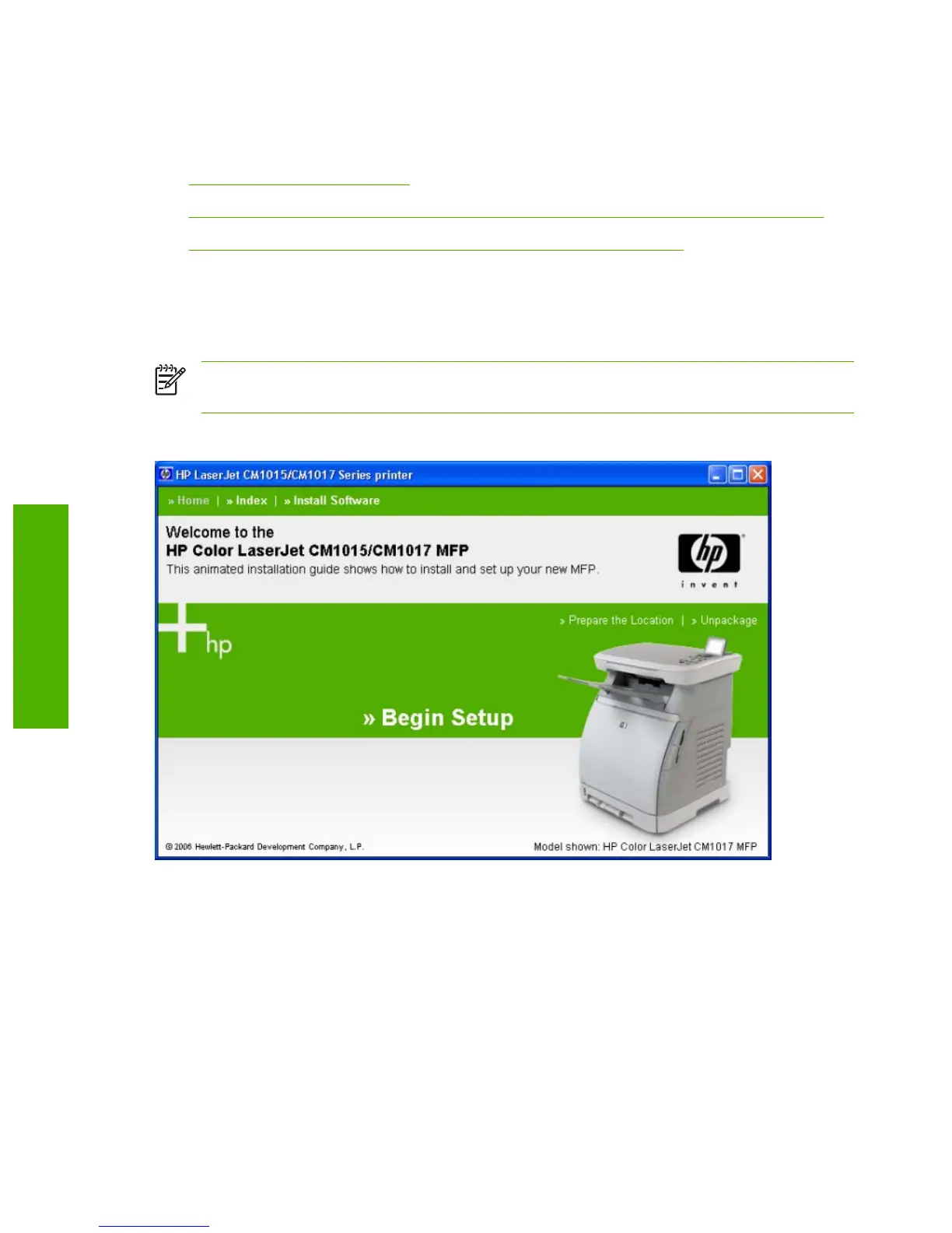 LaserJet CM1015 MFP/CM1017 MFP has already been set up or is already installed on a network,