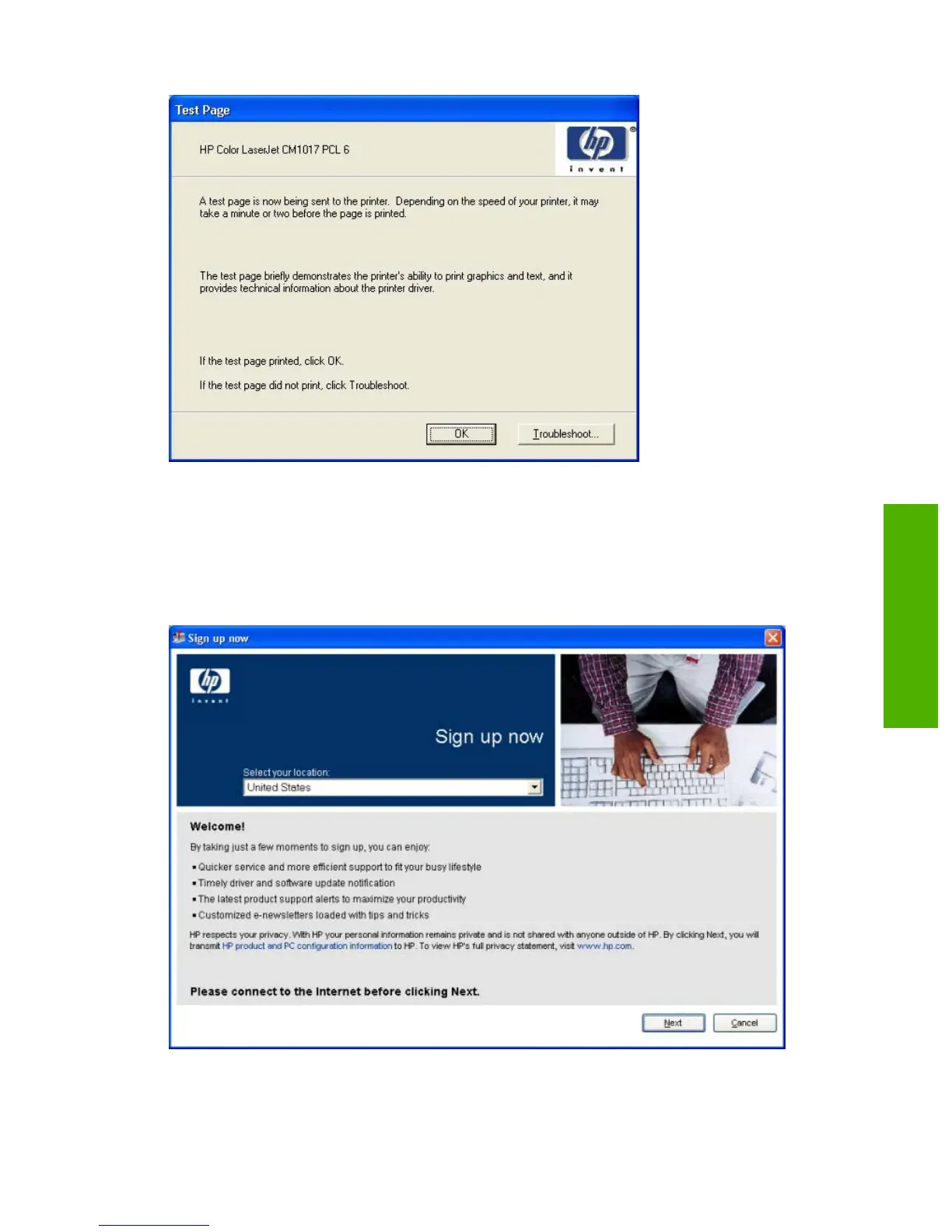 MFP/CM1017 MFP. If the test page prints successfully, click OK. If the test page fails to print, click