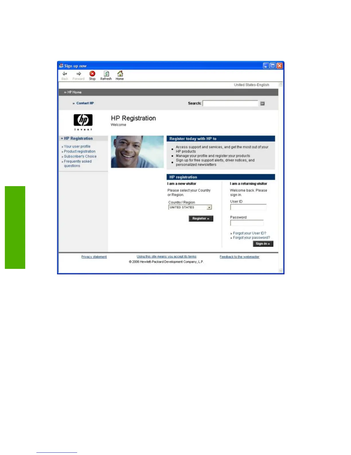 If Web access is available, sign up to receive information from HP by following instructions on the Sign