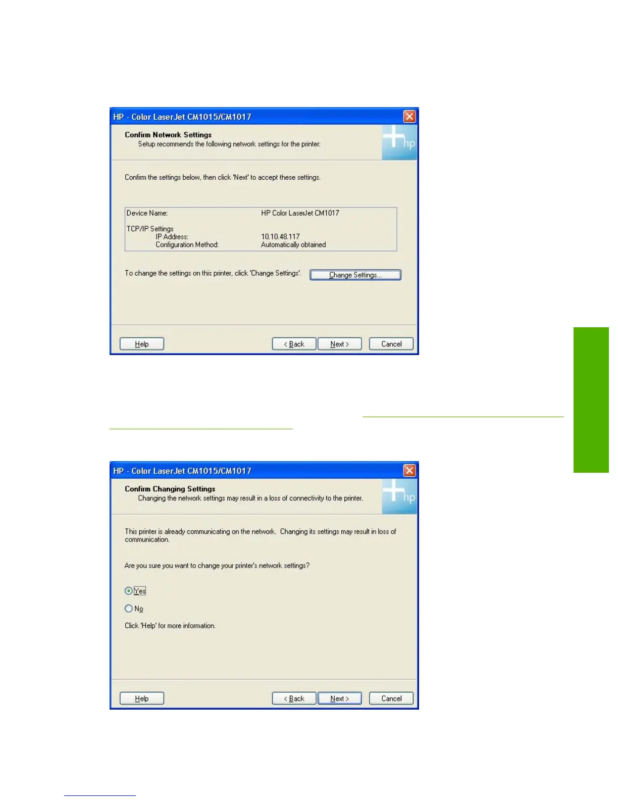 Figure 3-40 Network install – Confirm Changing Setting dialog box