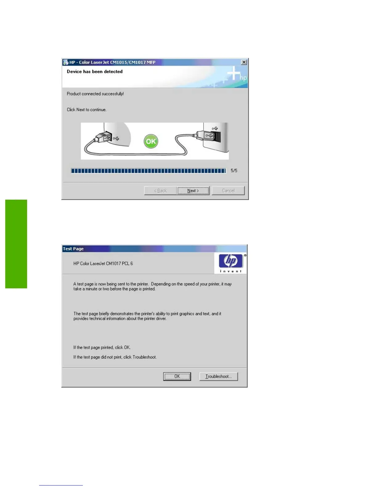MFP/CM1017 MFP. If the test page prints successfully, click OK. If the test page fails to print, click