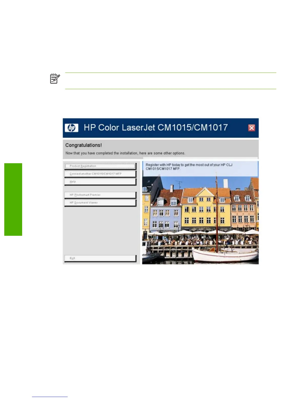 Immediate installation.After installing the HP Color LaserJet CM1015 MFP/CM1017 MFP