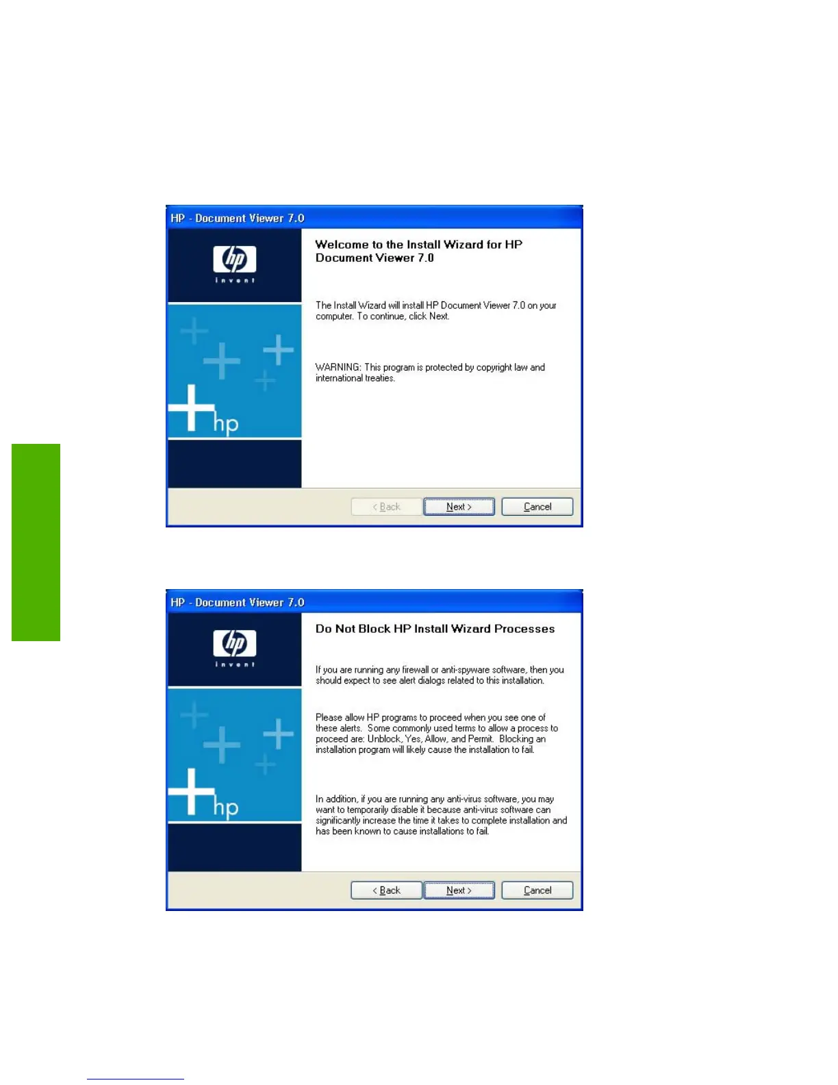 2. The Do Not Block HP Install Wizard Processes dialog box appears. Click Next to continue.