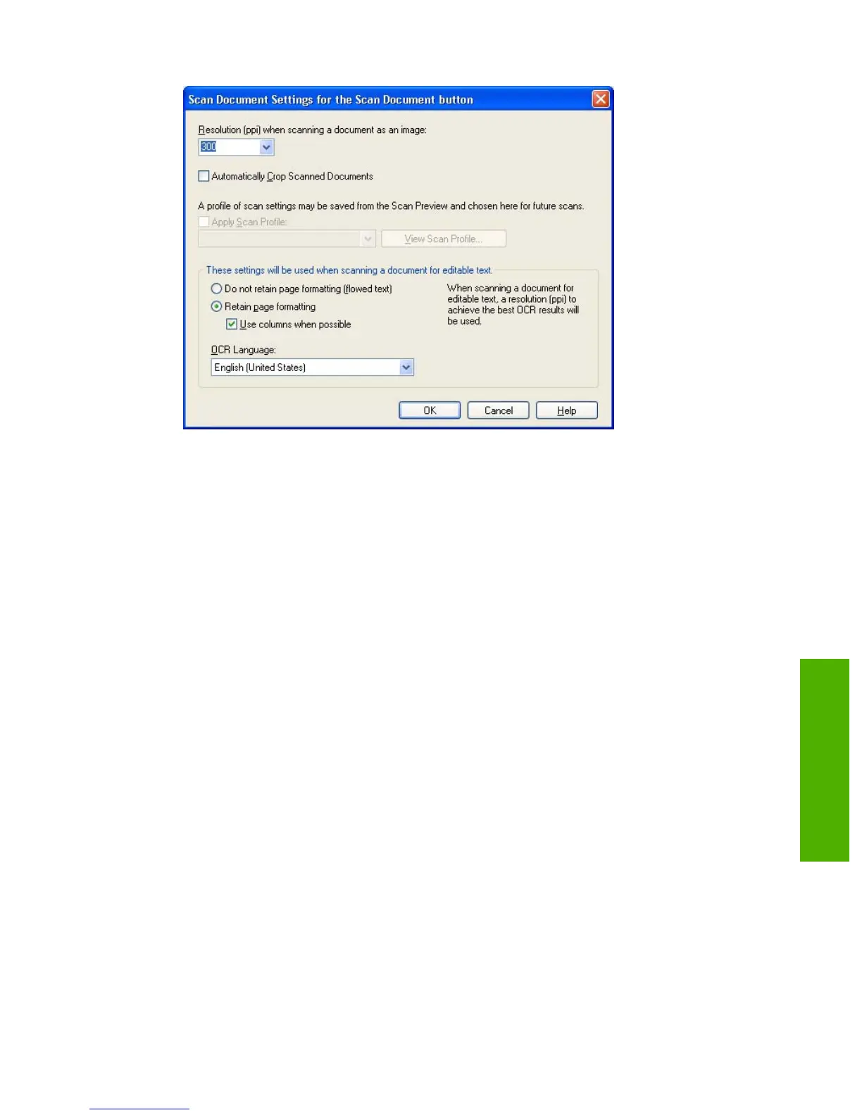 Figure 4-5 Scan Document settings – HP LaserJet Scan software