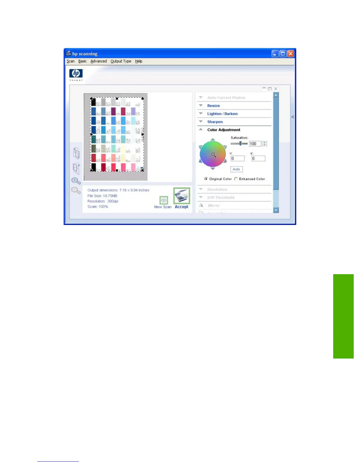 Color Adjustment. Use this control to adjust the color on the scanned image.