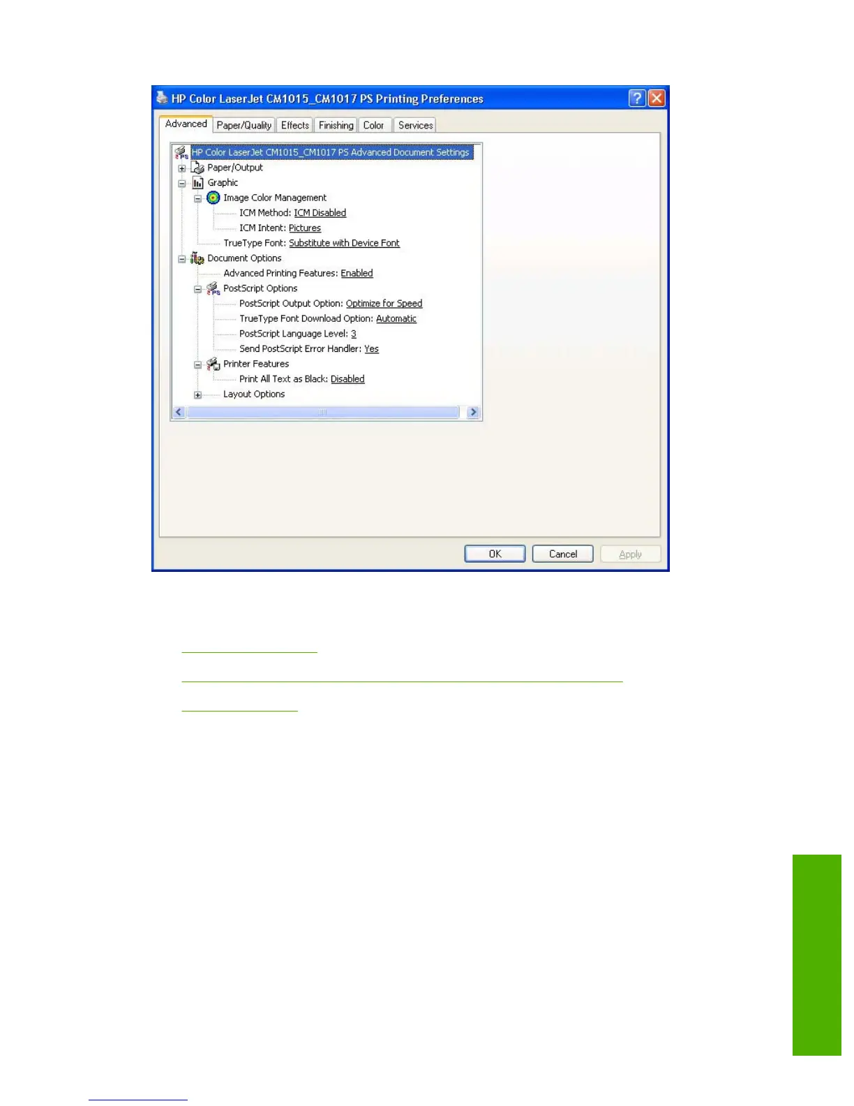 Graphic settings (HP PCL 6 Unidriver and PS Emulation Unidriver only)