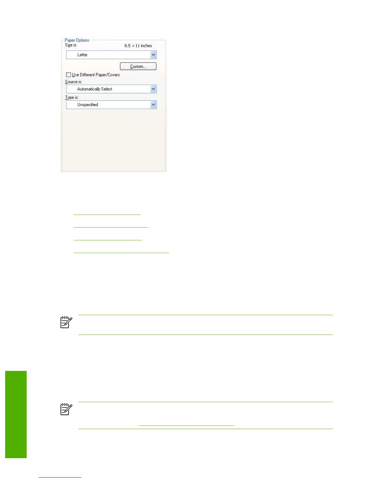 The appearance of the Paper Options group box changes when the Use Different Paper/Covers