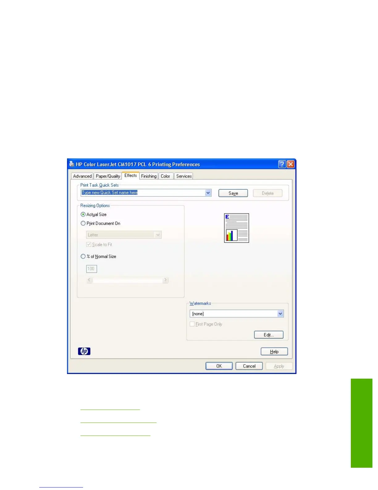 Use the Effects tab to create unique paper effects such as scaling and watermarks.