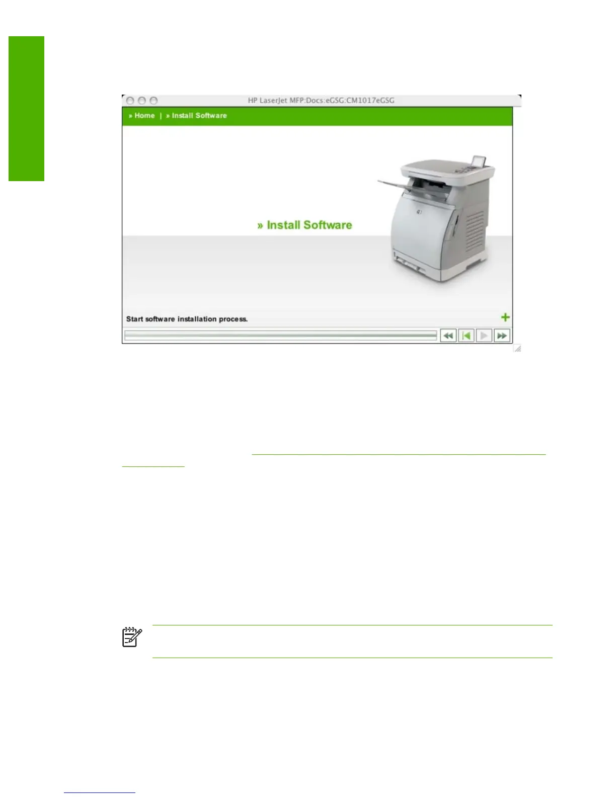 4. If you have not set up your HP Color LaserJet CM1015 MFP/CM1017 MFP, click Begin Setup and