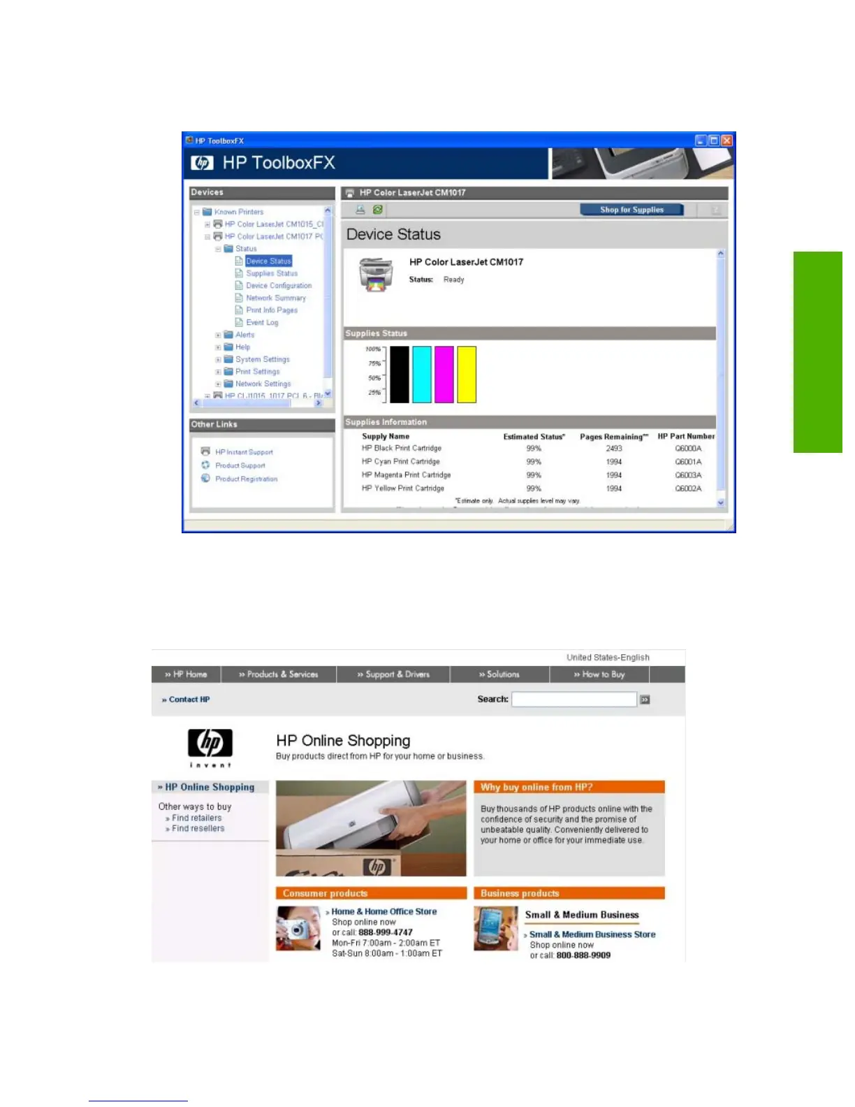 Figure 2-22 HP Online Shopping screen — HP Solution Center