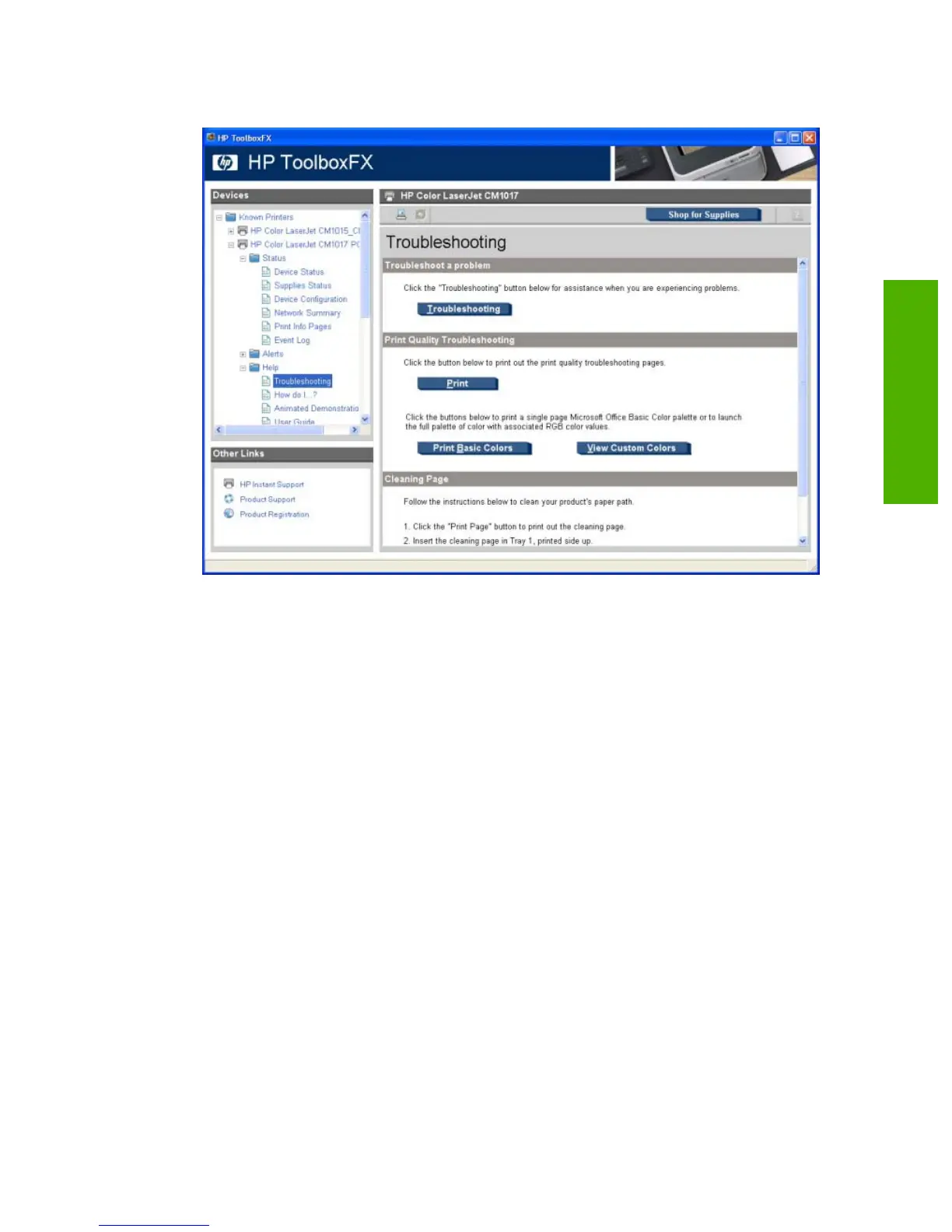 Figure 2-28 Troubleshooting page – HP ToolboxFX