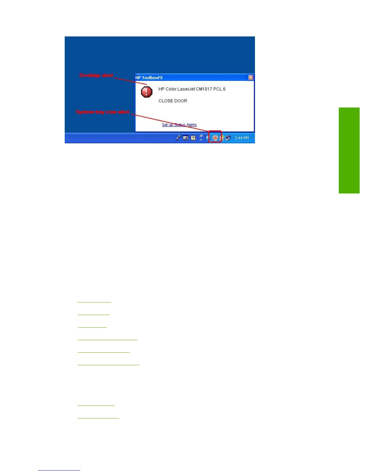 Desktop alert messages appear immediately when an error or print-cartridge warning occurs in the